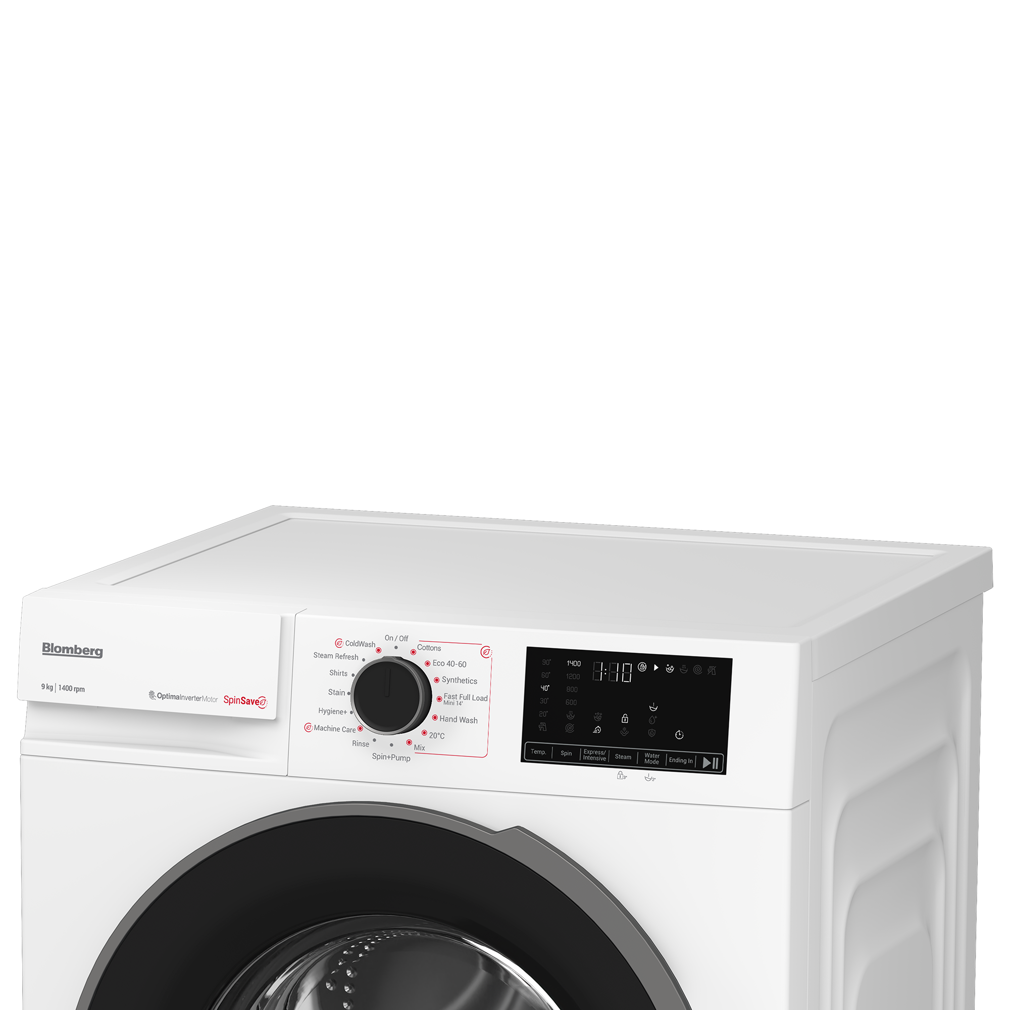 Meet the Blomberg LWA29461W 9kg 1400 Spin White Washing Machine. Designed to revolutionise your laundry routine, this machine offers advanced features like an Optima Inverter Motor, Fast Full Load program, and Steam Refresh.