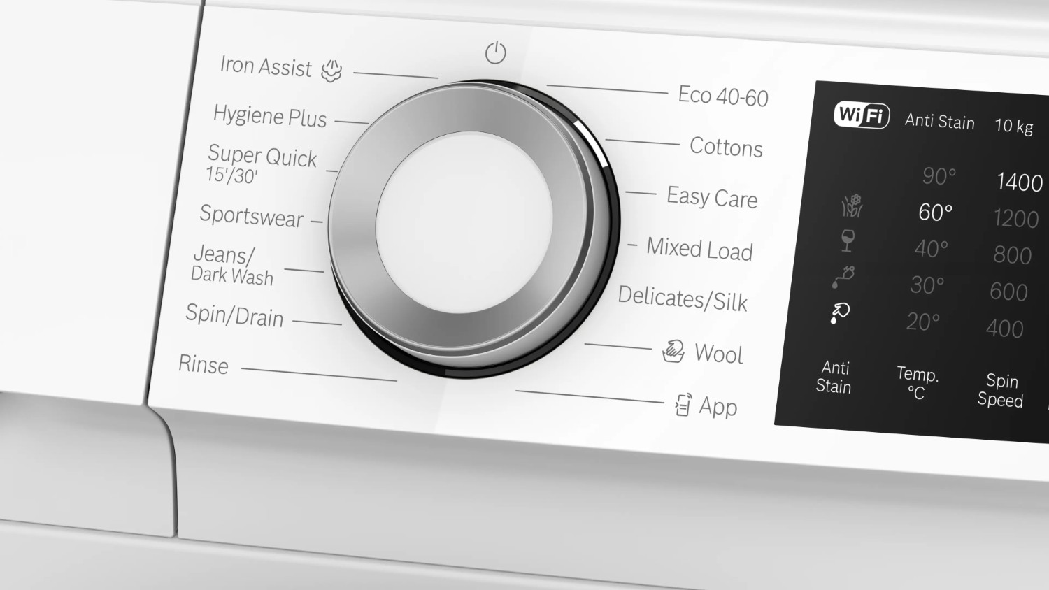 Iron Assist is designed to reduce unwanted wrinkling, helping to shrink that after wash ironing pile. The machine also includes plenty of programs for specific care, such as Shirts, Sportwear, Jeans, and Woollens. There are also some really useful general programs, such as Hygiene Plus and a dedicated Super Quick 15' program. Now all your clothes can look tidier.