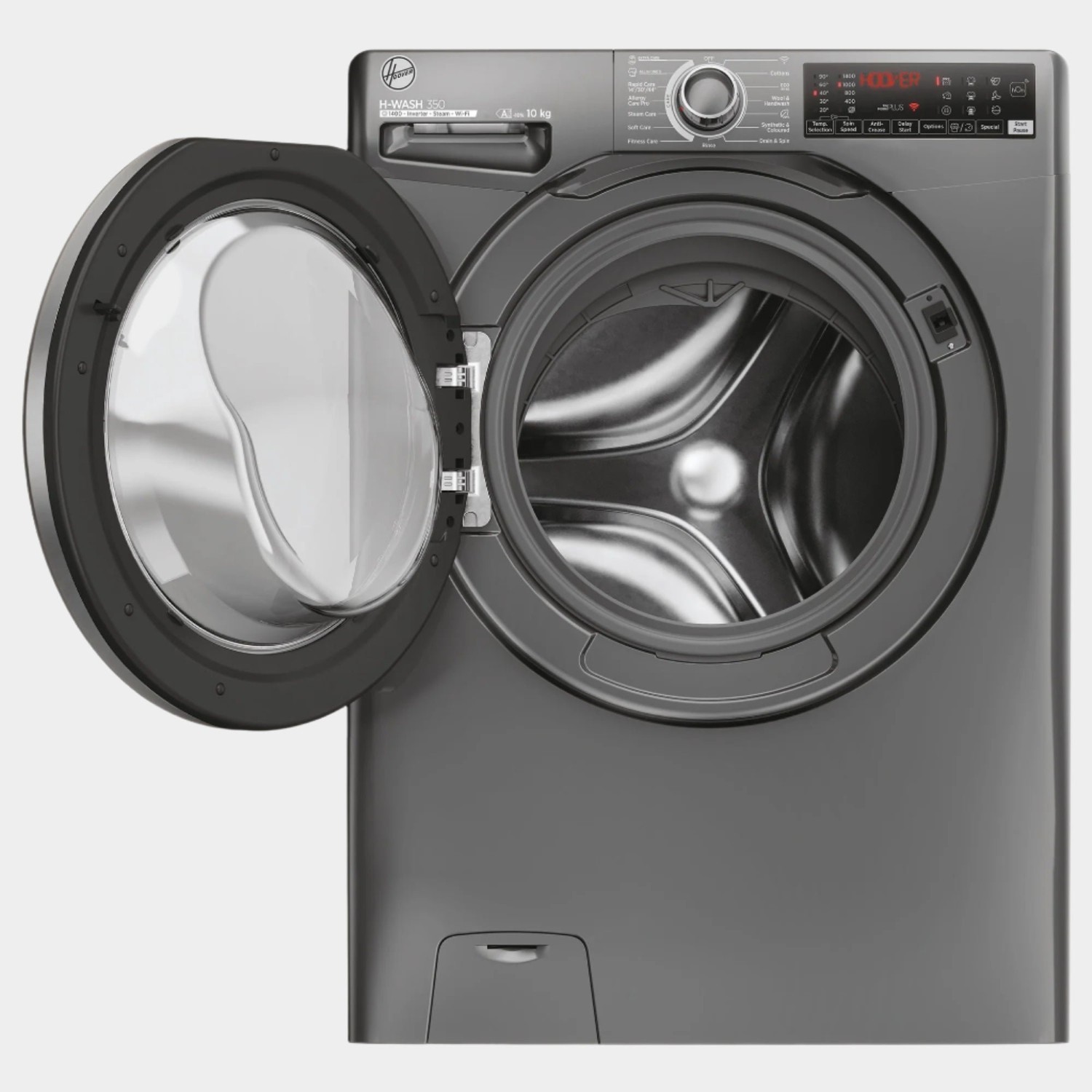 Hoover's H3WPS4106TRR6-80 H-Wash 350 is a large, powerful 10kg washing machine that combines smart technology, super energy efficiency, and straightforward sensible design. Finished in a graphite colour, the H3WPS4106TRR6 caters to a wide range of laundry needs, all while providing exceptional garment care. It's perfect for households that value performance and convenience.