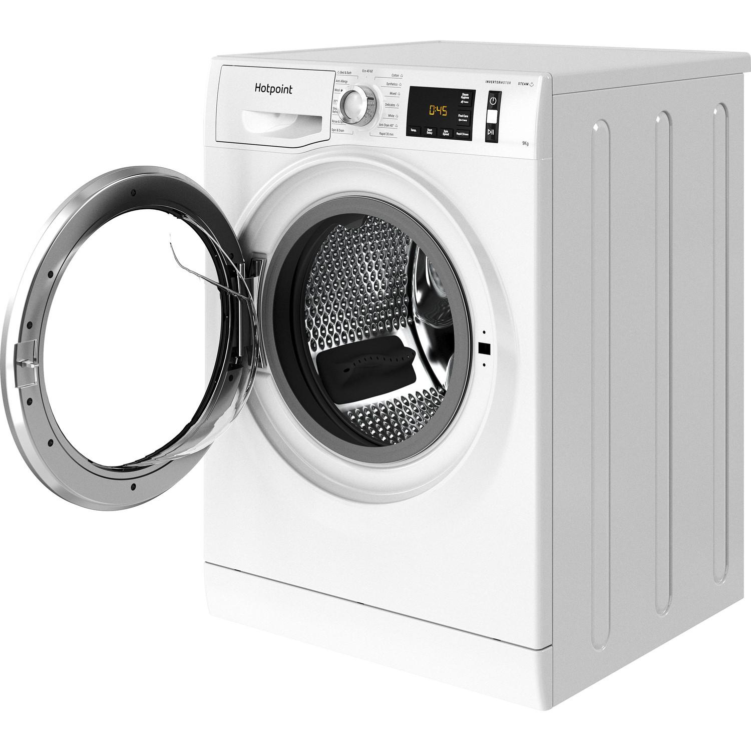 The Hotpoint NM11948WSAUK washing machine features a 9kg load capacity and a 1400rpm spin speed, making it ideal for large households. Its high energy efficiency rating of A ensures it operates economically, reducing your energy consumption and saving you money on utility bills.