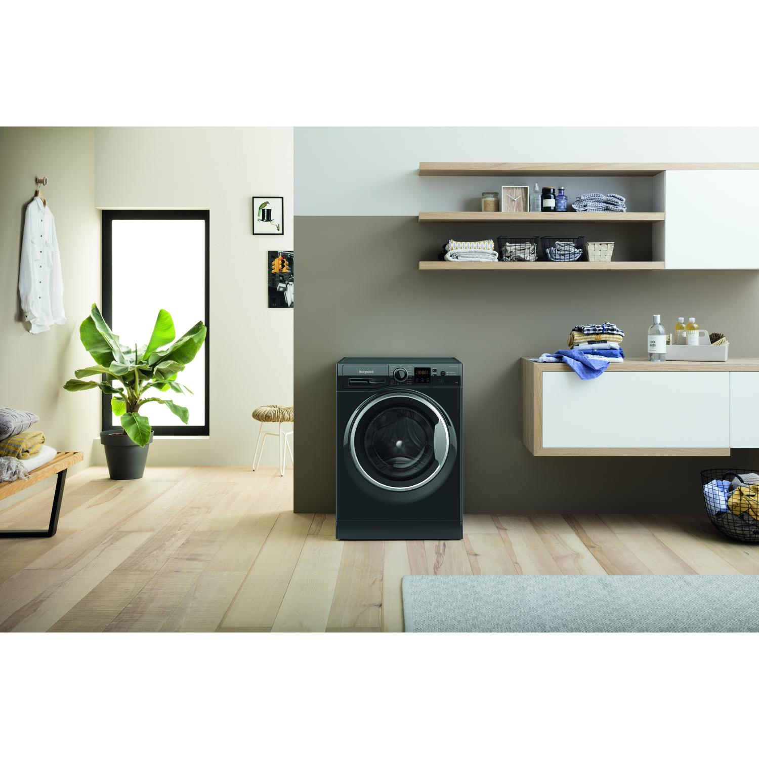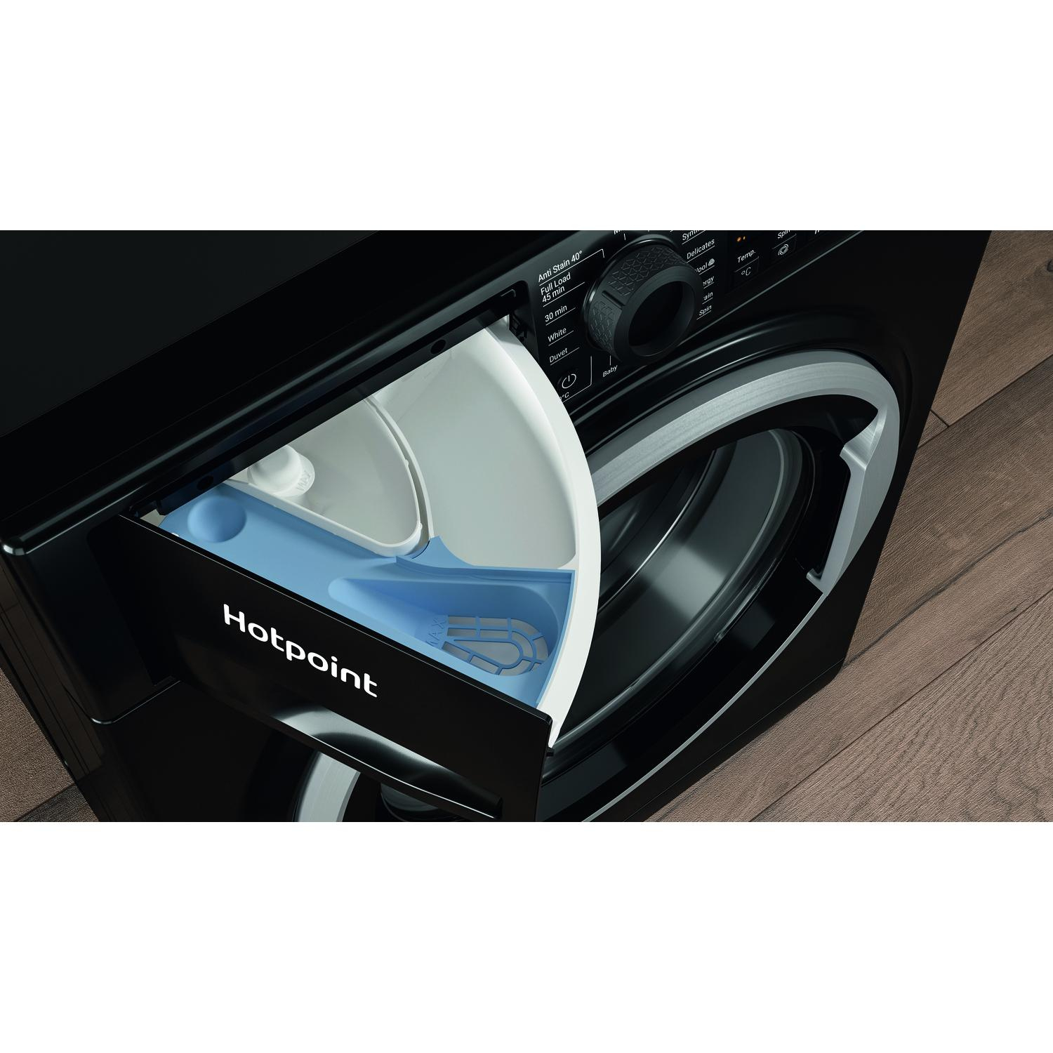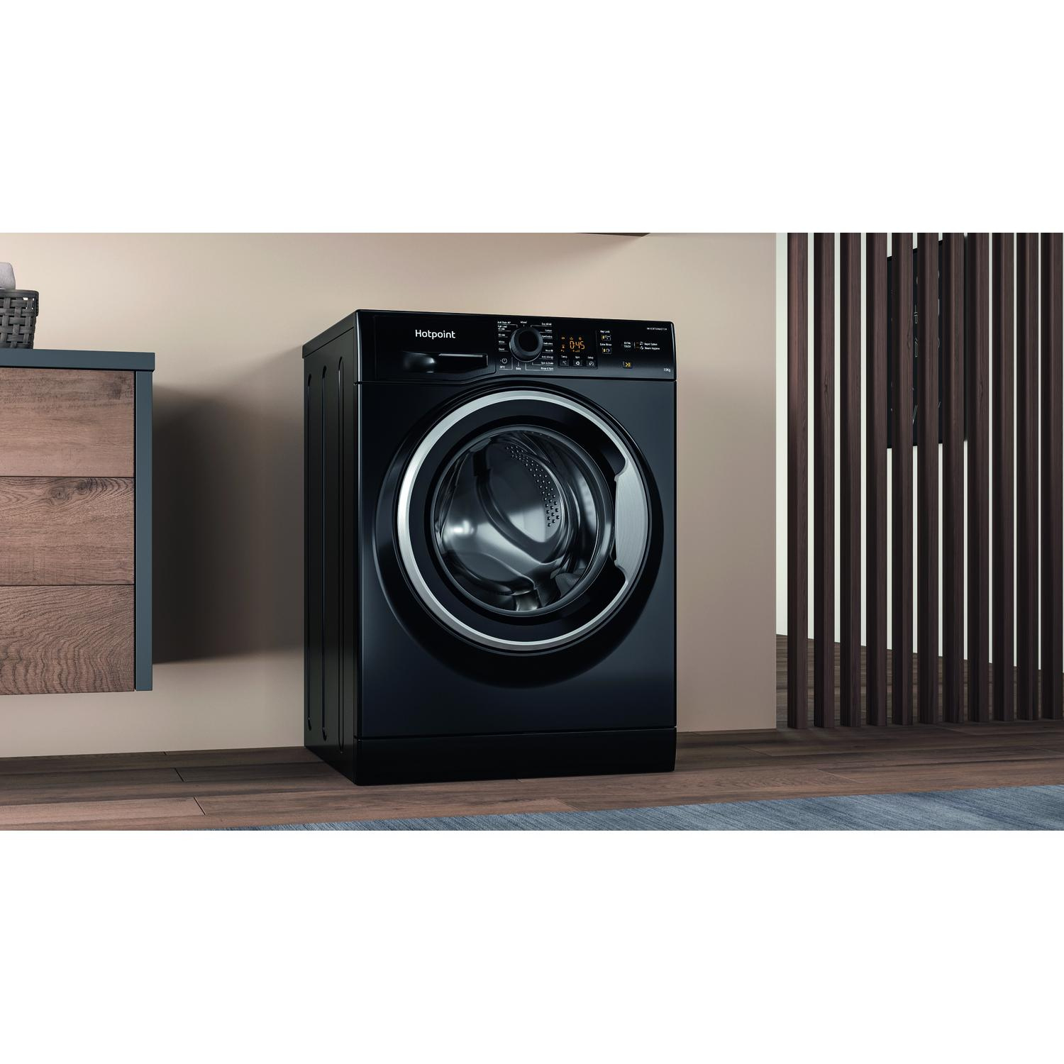 Hotpoint's NSWM1046BSUK washing machine is a versatile and efficient appliance designed to make doing the washing easier for large households. With a range of innovative features and 16 different wash programs, this freestanding, washing machine offers convenience, performance, and energy efficiency in a modern black design.