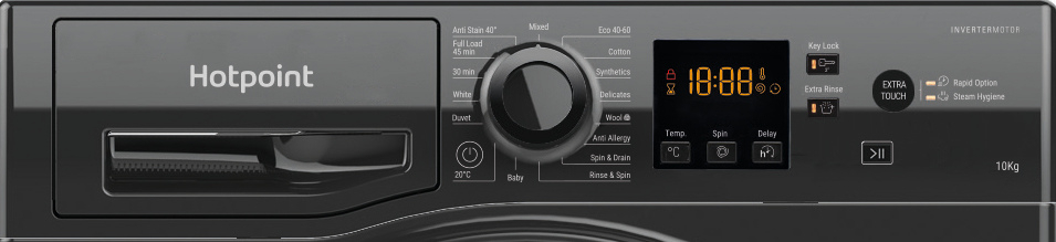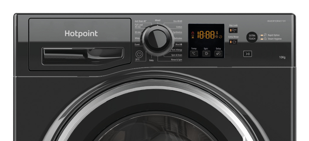 The Rapid Option allows you to reduce the wash cycle duration by up to 50%, saving you time while maintaining excellent cleaning results. The machine's 10kg capacity is ideal for large households, ensuring you can wash more clothes in fewer loads. With a quick wash time of just 30 minutes, you can have clean clothes ready in no time.