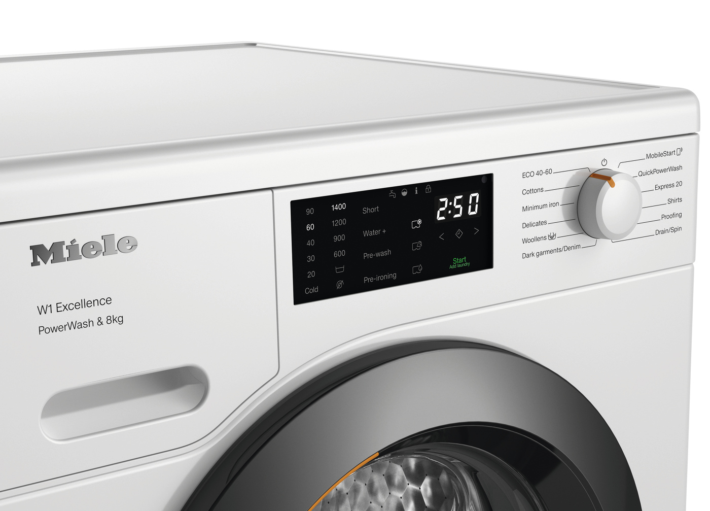 With Miele@home, you can enjoy complete control of your washing machine via a smartphone app. This feature allows you to manage your laundry remotely, providing convenience and flexibility. The machine also includes a start delay option, temperature control, and an add laundry feature, making it easy to tailor each wash to your specific needs.