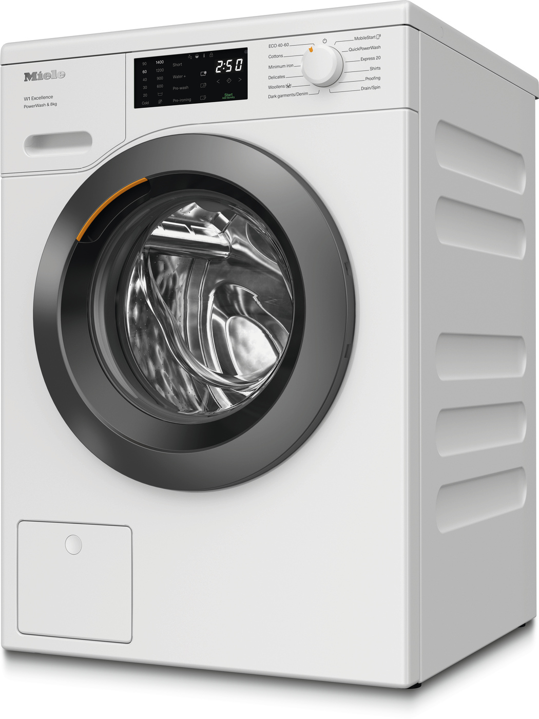 This washing machine boasts an 8kg capacity and a 1400 spin speed, making it ideal for handling everyday laundry need efficiently. The Quick Power Wash feature delivers spotless results in just 49 minutes, perfect for busy lifestyles. Miele's exclusive cap dosing system provides precise detergent dispensing for different textiles and stains, ensuring optimal cleaning performance.