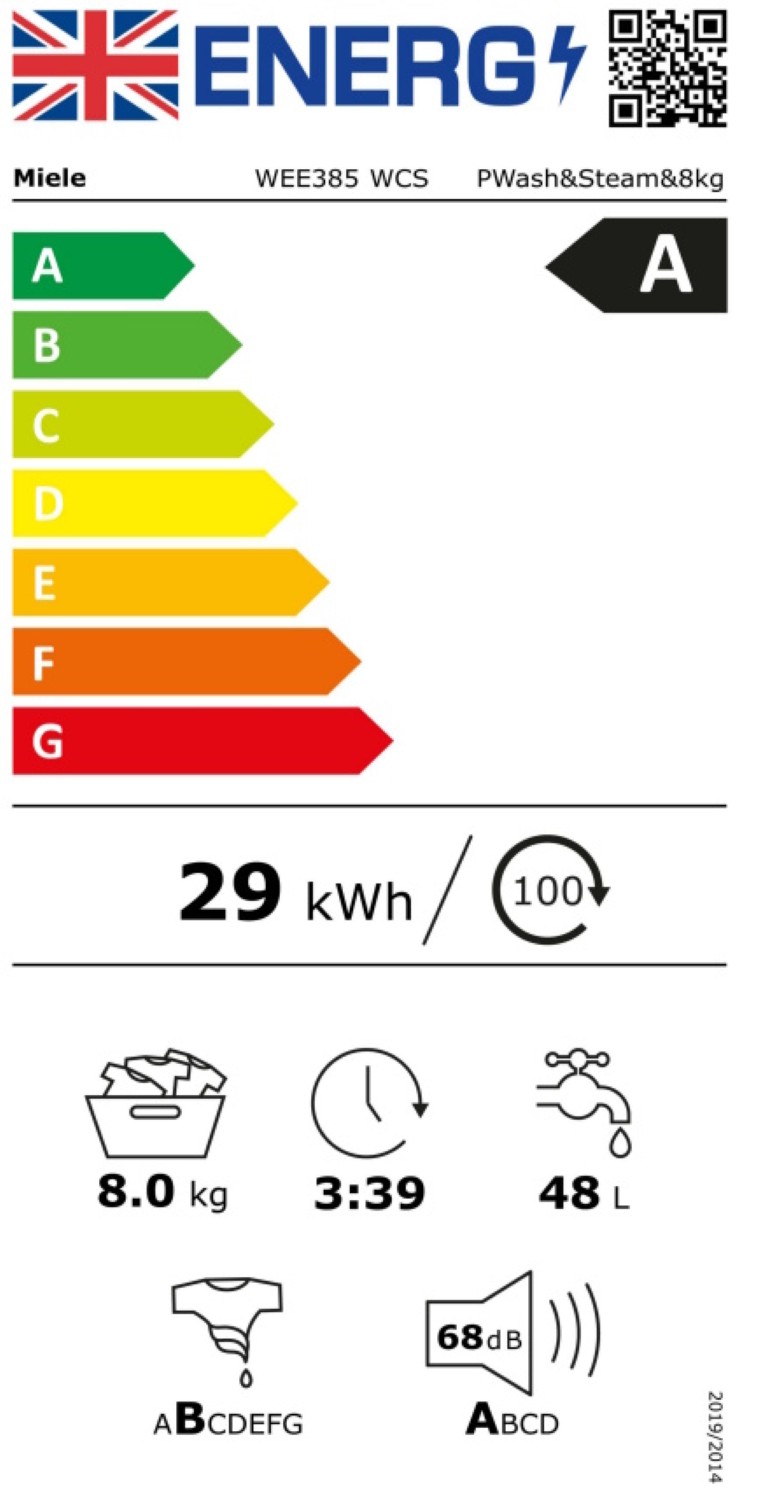The Water Control System enhances safety by monitoring water intake and detecting leaks, ensuring peace of mind with every wash. Additionally, the machine comes with a 2 year guarantee, reflecting Miele's commitment to quality and customer satisfaction. With its superb design and advanced features, Miele's WEE385 WCS is a reliable and efficient addition to any home.