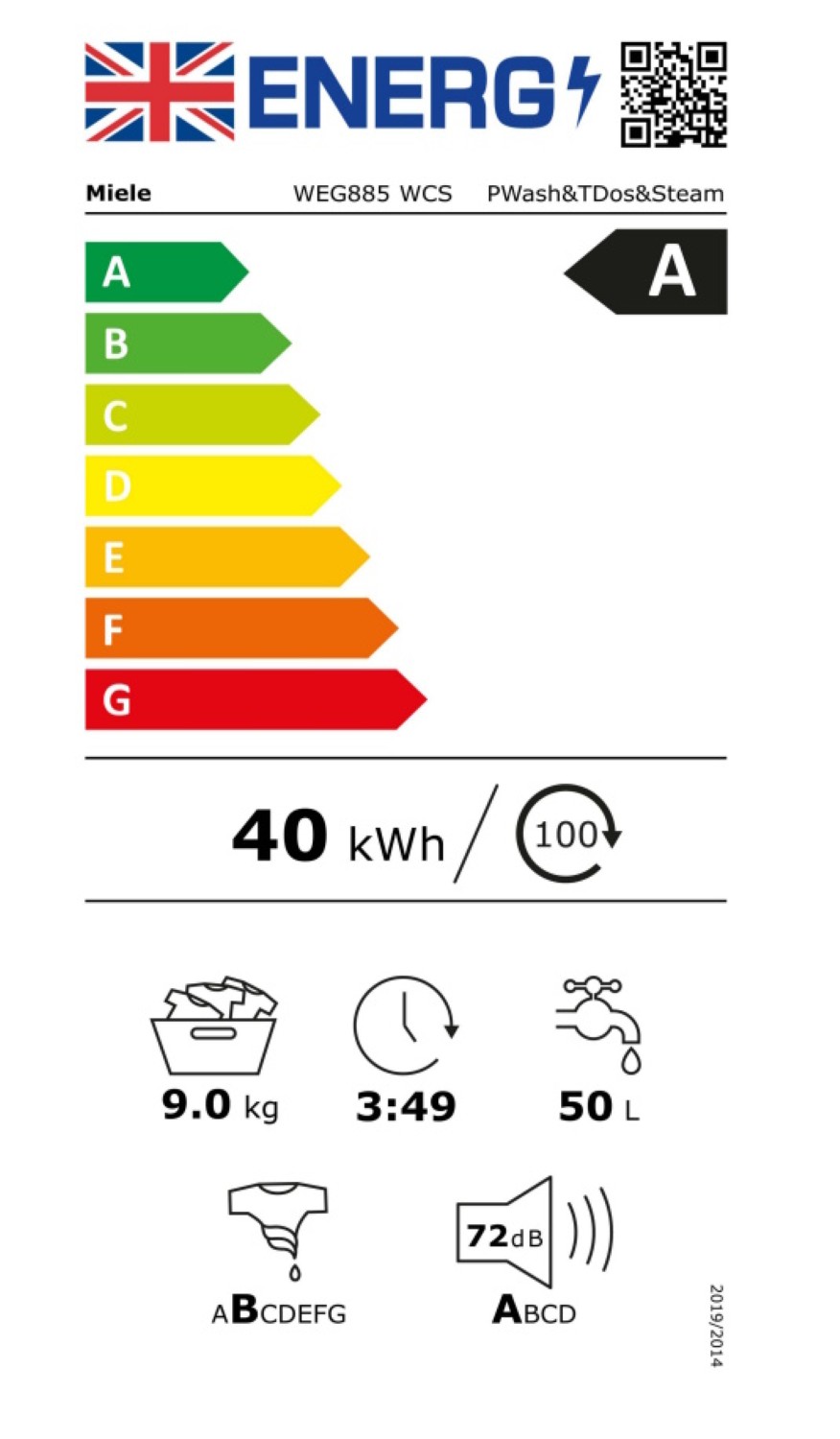 Boasting an impressive A energy rating, the WEG885WCS ensures significant savings on energy bills while being environmentally friendly. Its generous 9kg capacity allows you to wash larger loads, reducing the number of cycles needed and saving you valuable time.