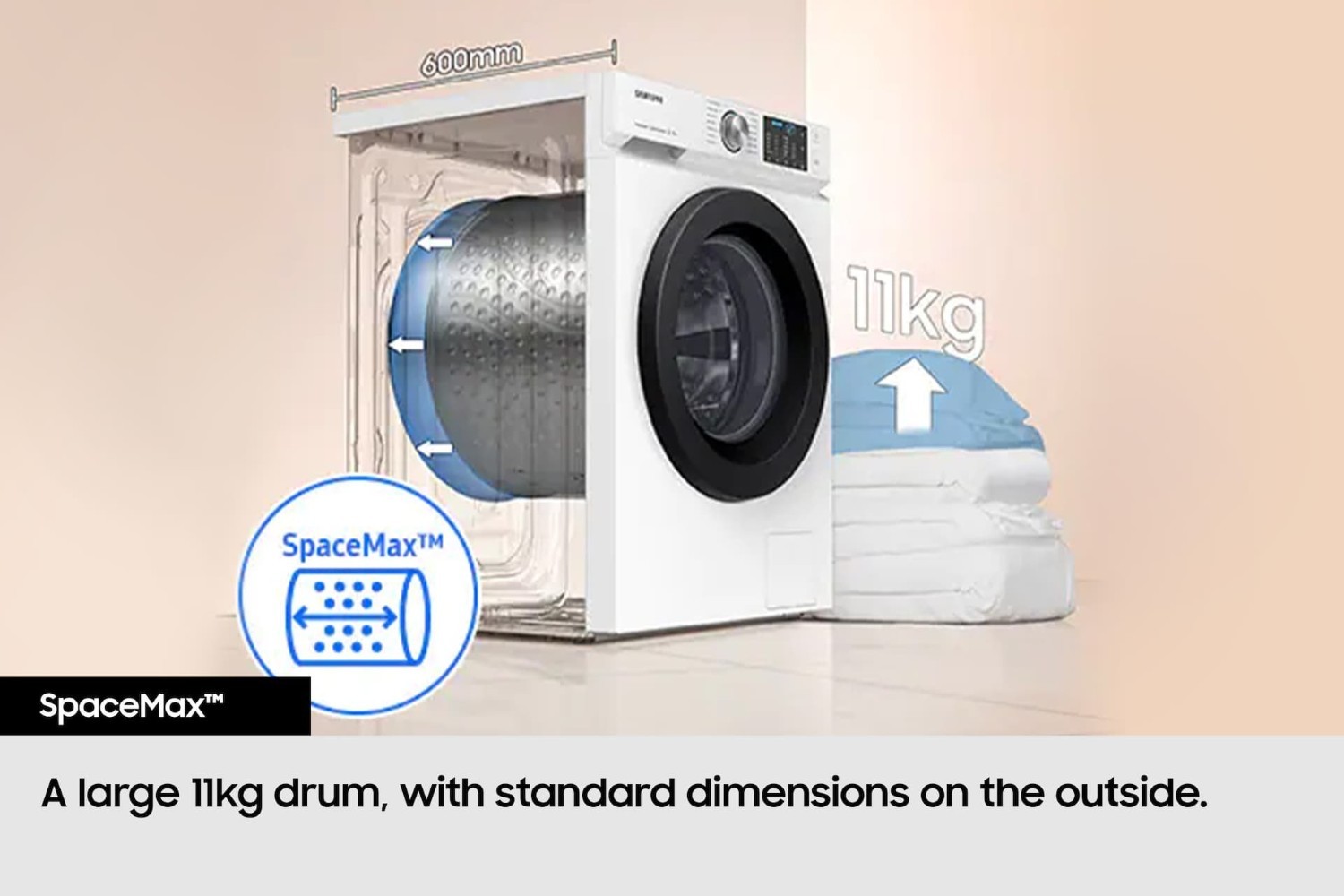 The WW11DB8B95GHU1 has a huge 11kg capacity, perfect for households with more intensive washing requirements and for accommodating bulky items like duvets. Digital Inverter Technology results in a motor with reduced noise and increased energy efficiency, so you can get a quieter washing experience without compromising on performance.