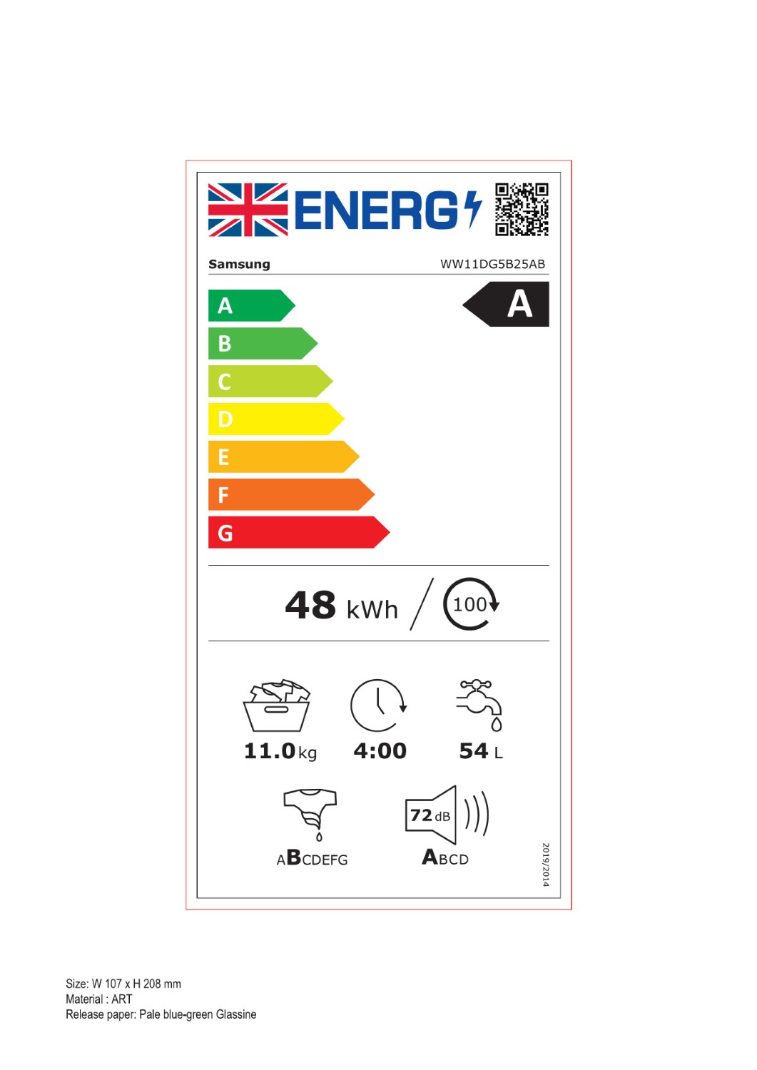 Rated with an A energy efficiency class, the WW11DG5B25ABEU supports a more sustainable home by reducing energy and water usage. It has a digital inverter motor for reliable performance and longevity, backed by a 20 year parts only warranty (upon registration).