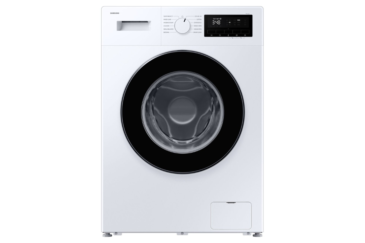 Achieving an energy efficiency rating of A, Samsung's WW90FG3M05AWEU optimises energy use without sacrificing cleaning performance. Innovative Hygiene Steam releases steam from the base of the drum, deactivating allergens commonly found in households, and ensuring your clothes receive a deep and hygienic clean. The Drum Clean function further enhances hygiene by automatically notifying you when it's time to clean the drum, using soaking, pulsating, and high speed spinning to remove residue and dirt.