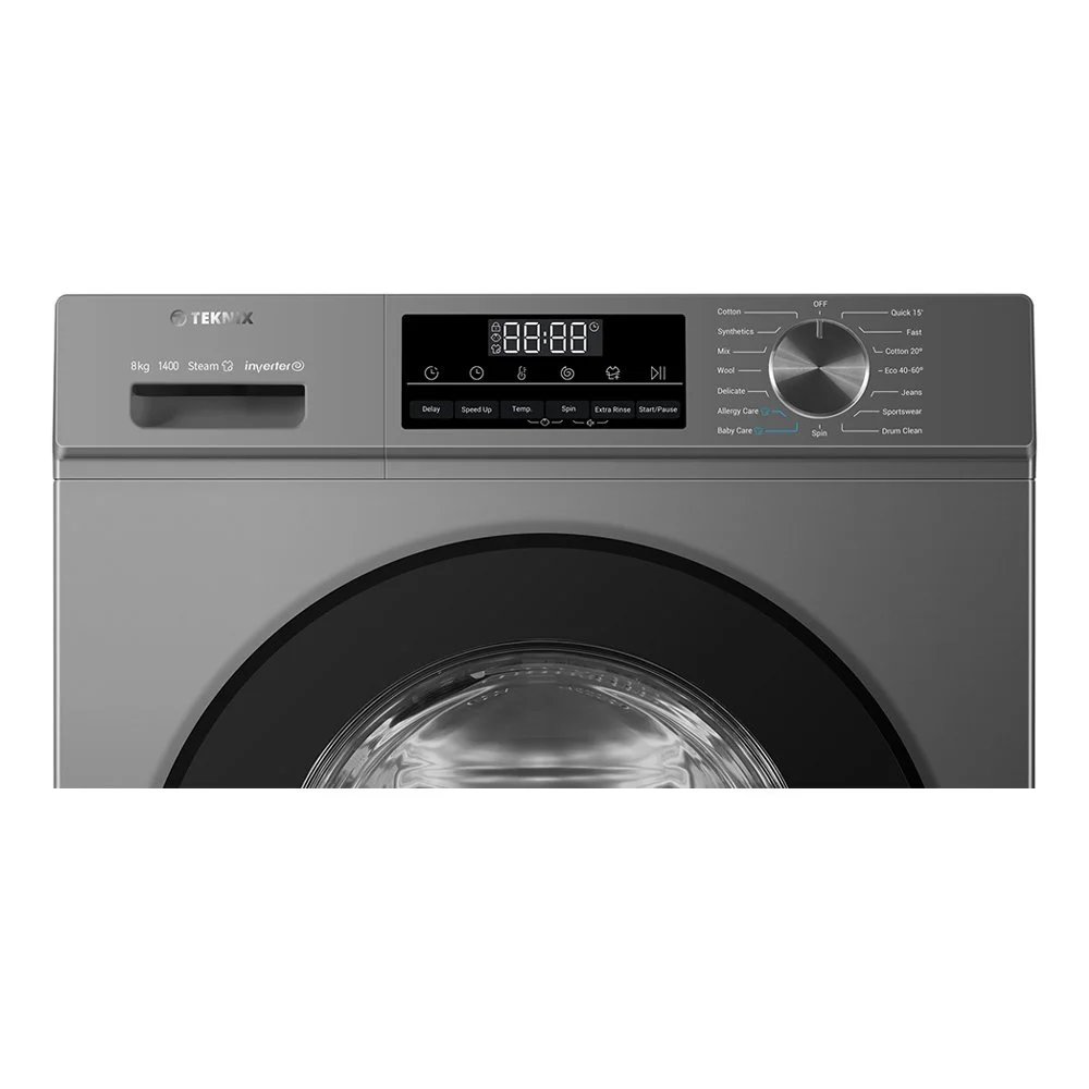 Teknix's TK3W814XS washing machine easily meets the laundry needs of most households with its 8kg capacity and wide range of versatile programs. Finished in dark silver, the TK3W814XS combines efficiency and ease of use, making it an excellent choice for those looking to upgrade their household laundry capabilities.