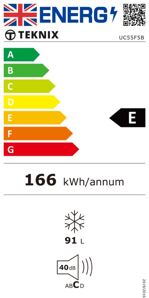 With a maximum noise level of just 40 dBA during operation, the Teknix UC55F5B runs quietly, ideal for when you just need a bit of peace and quiet. You can enjoy all the modern benefits of keeping things really really cold without any disturbance, even in smaller or open plan living spaces.
