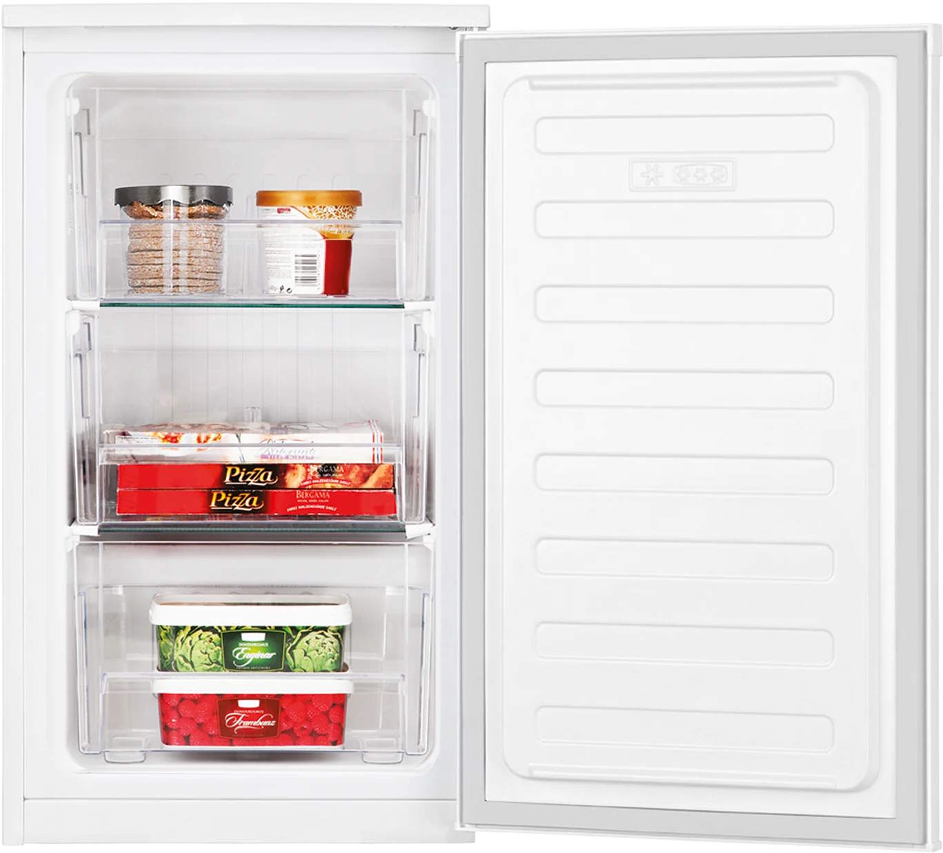 With a total net capacity of 65 litres, this model offers structured storage through three freezer drawers and two shelves. The four-star freezer rating ensures safe storage of frozen goods and enables the freezing of fresh food with confidence. A freezing capacity of 3kg per 24 hours supports everyday household needs.