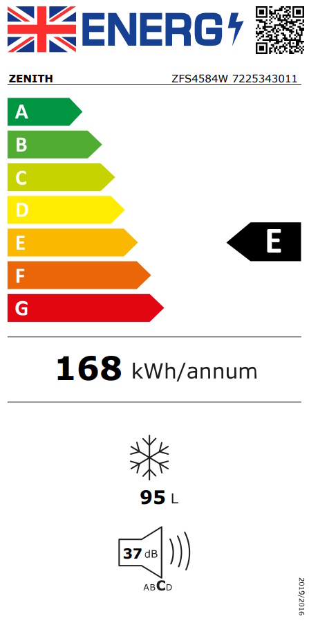 Zenith's ZFS4584W under counter freezer is efficient and compact. With a usable capacity of 95 litres, this freezer is ideal for smaller spaces such as kitchens, garages, or utility rooms.
