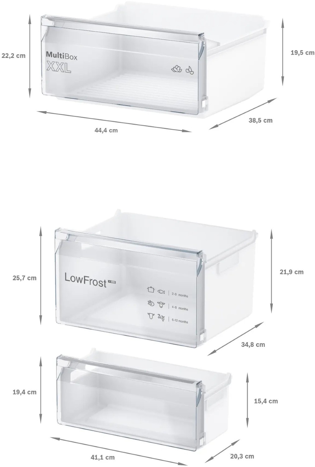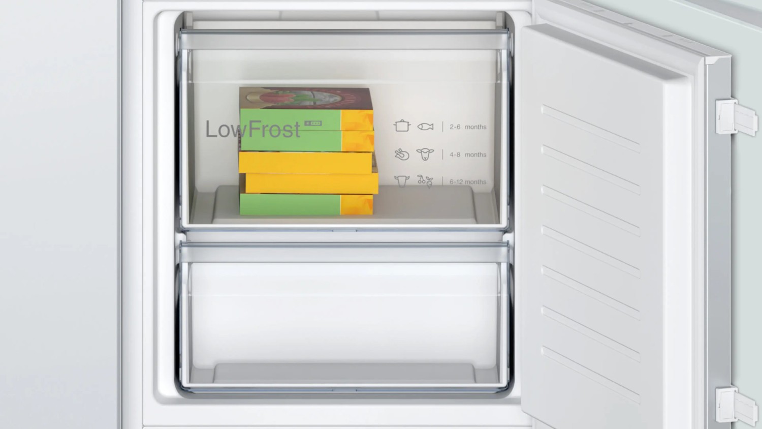 Thanks to Bosch's Low Frost design, you'll experience reduced frost build up, resulting in a freezer that requires defrosting less frequently. This not only saves time but also conserves energy, making it a more efficient choice for your home.