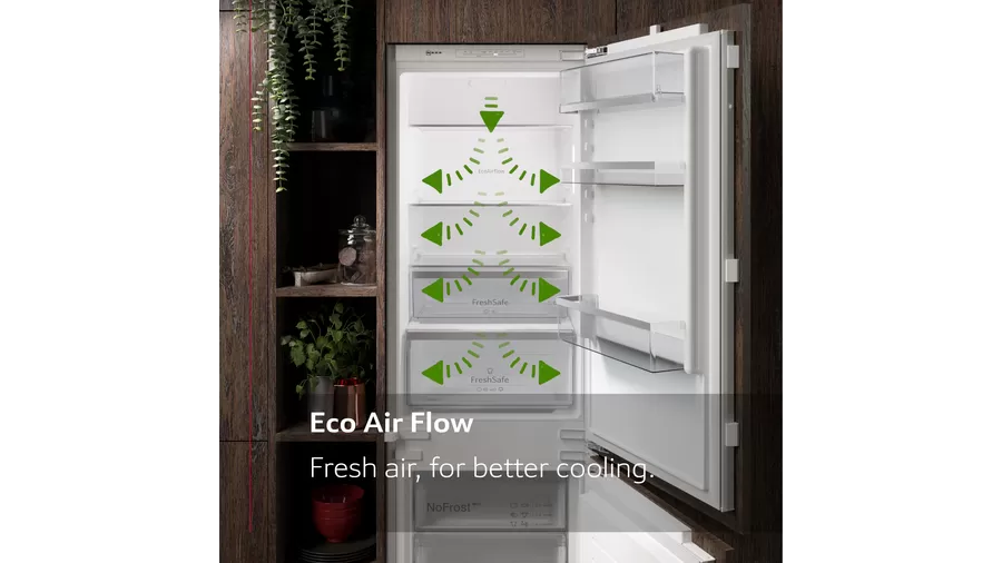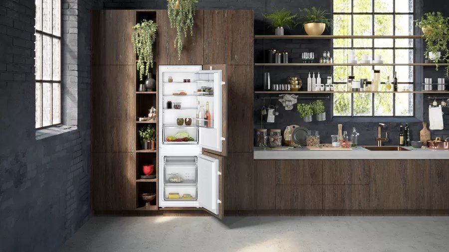 The Neff KI5862SE0G built-in fridge freezer is a well-designed and efficient cooling appliance that combines practicality with flexible storage solutions. Offering a total capacity of 267 litres across the fridge and freezer compartments, it features Low Frost technology, consistent air circulation, and thoughtful internal design making it ideal for seamless integration into a modern kitchen.