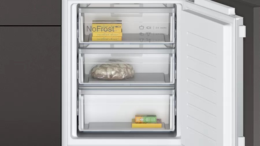 Equipped with Full NoFrost, this model eliminates the need for manual defrosting. By preventing ice build-up within the freezer compartment, it ensures consistent performance, optimised energy efficiency, and uninterrupted storage capacity.