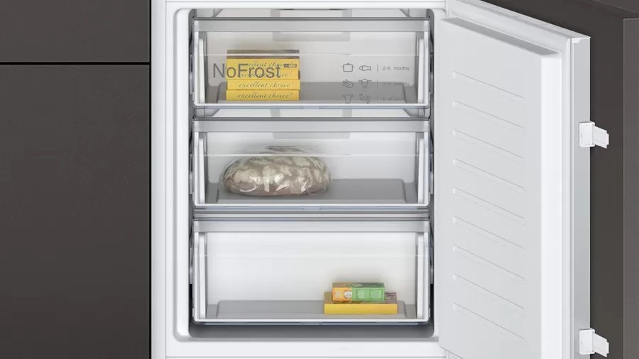 The Neff KI7862SE0G is a 178cm built-in frost-free fridge freezer that offers efficient cooling, flexible storage, and seamless integration into modern kitchen cabinetry. With a total capacity of 184 litres in the fridge and 76 litres in the freezer, this appliance is designed for households seeking convenience, reliability, and a low-maintenance refrigeration solution.