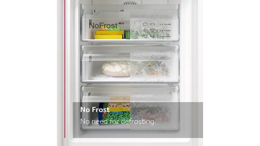 Thanks to Full NoFrost technology, the freezer compartment remains free from ice build-up, eliminating the need for manual defrosting. This helps maintain consistent performance and ensures optimal use of storage space.