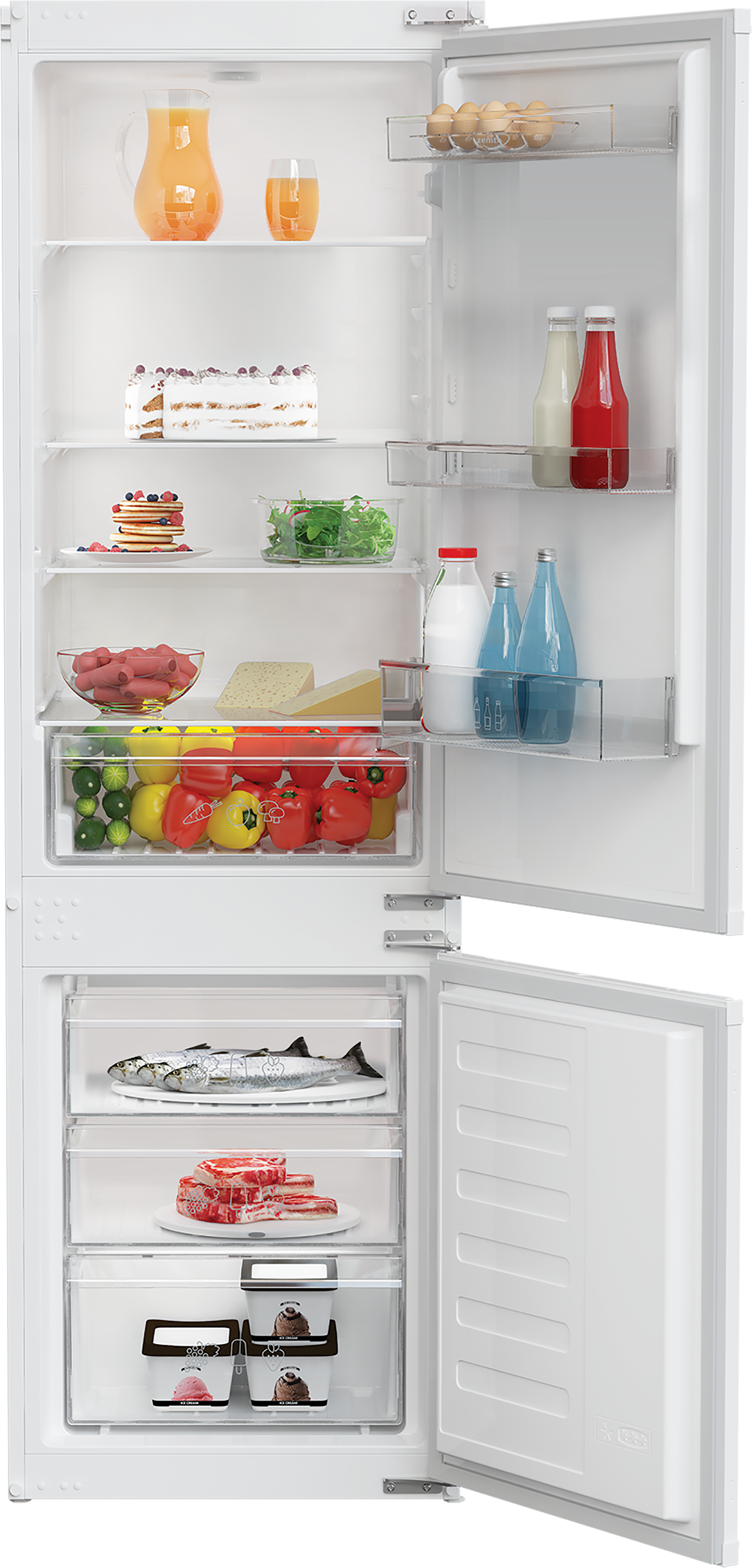 The Zenith ZICSD473 54cm Wide 70/30 manual defrost integrated fridge freezer is designed to blend seamlessly into your kitchen cabinetry, creating a clean and streamlined finish. With a generous 271 Litre total capacity and a practical 70/30 split, it offers ample space for fresh ingredients while keeping frozen essentials neatly organised.