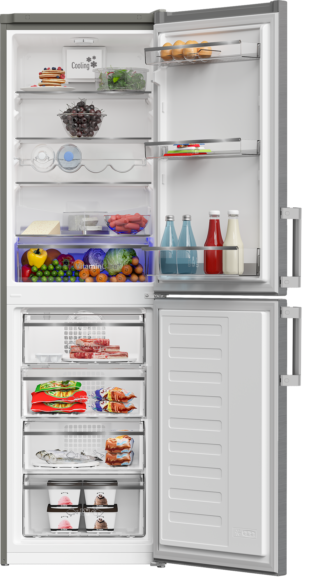 Unpack the family’s groceries into this Blomberg fridge freezer. A freestanding model, the KGM4574VPS is frost-free and comes in stainless steel to suit any kitchen. Using coloured LED lights, VitaminCare+ technology harnesses the power of nature. By simulating the sun’s 24-hour light cycle, your fresh fruit and veg keep their nutrients and stay fresher for longer. With Food Protector technology, you can store your freezer in an outbuilding or garage as it will work in temperatures as low as -15°C (freezer only).