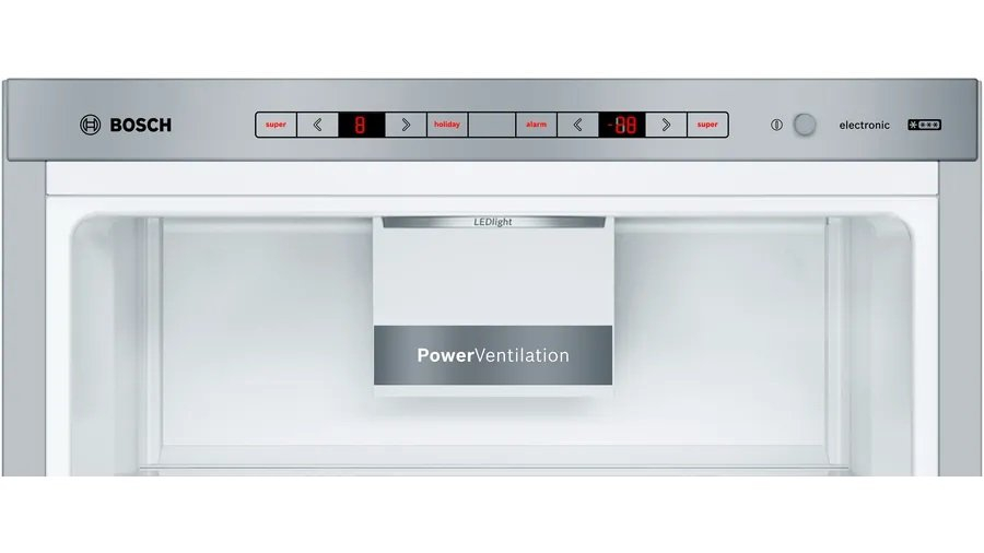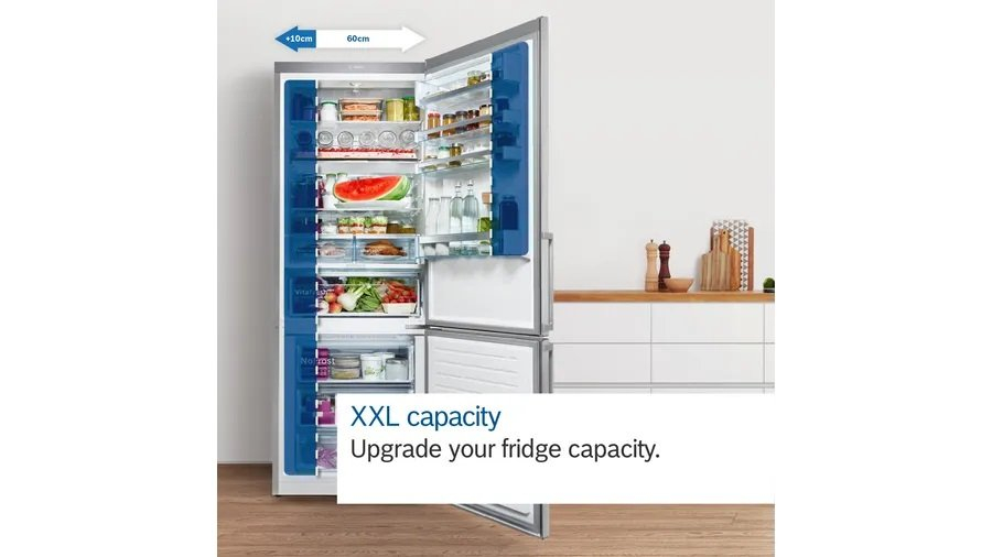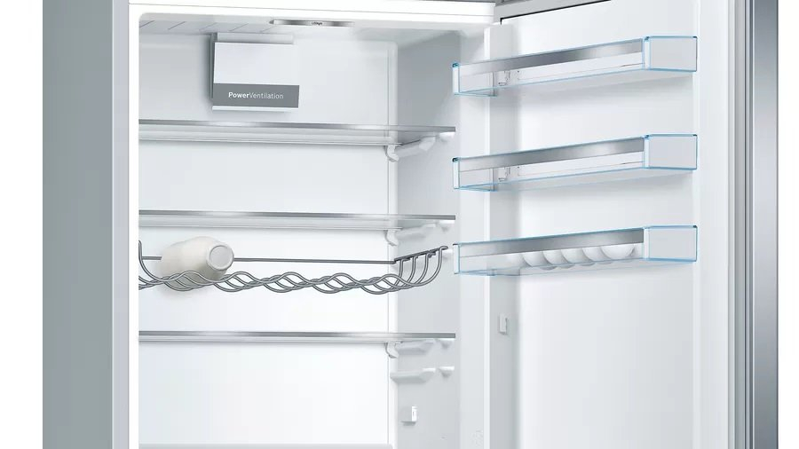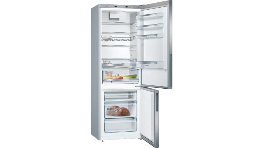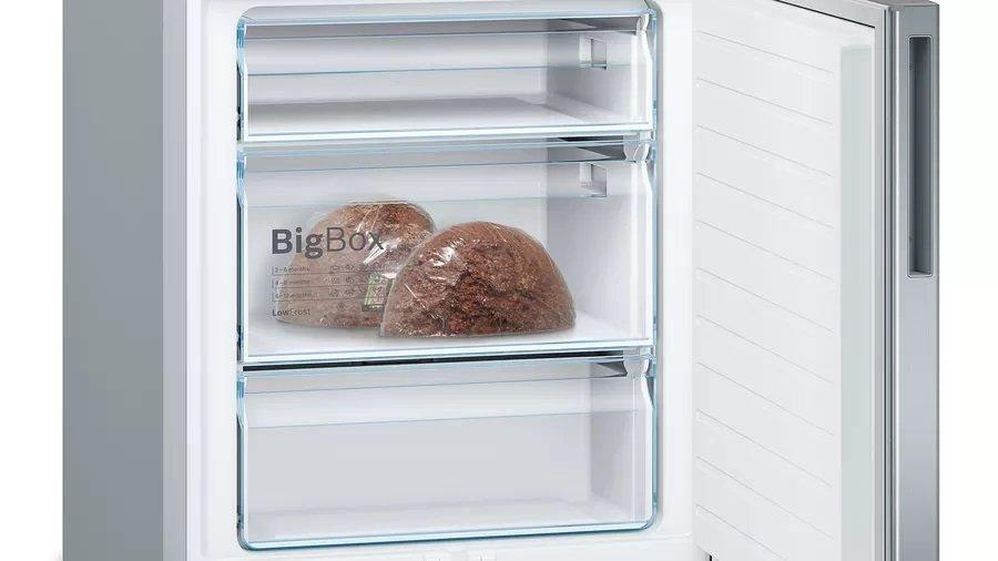 The Bosch KGE49AICAG is equipped with five shelves in the fridge compartment, two of which are adjustable, and four door bins for flexible storage. The EasyAccess shelf is a pull out glass shelf that allows for easier access to items inside the fridge. The BigBox drawer in the freezer is perfect for stacking food containers and storing larger items.