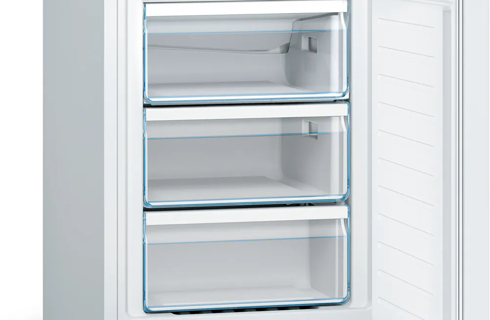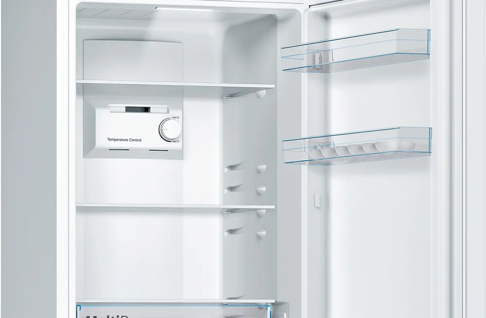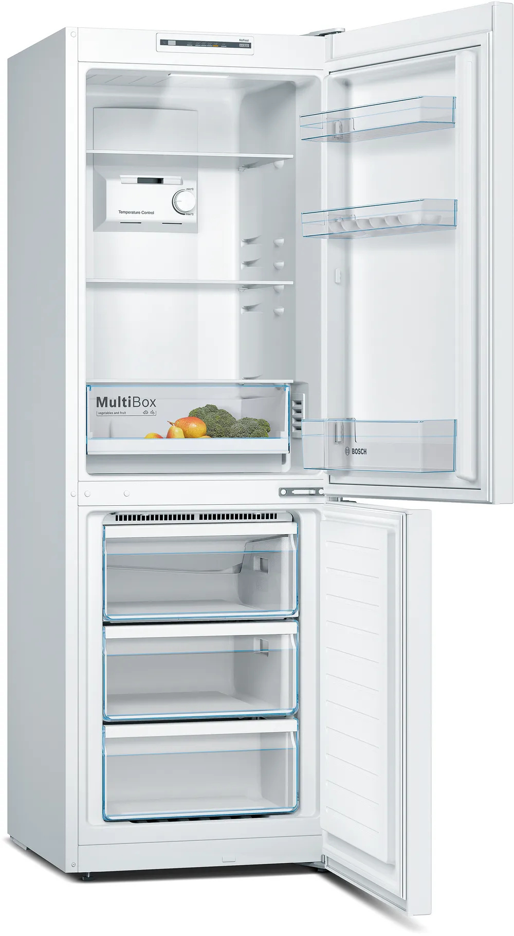 Bosch's KGN33NWEBG fridge freezer is a practical modern appliance designed to boost your kitchen's functionality. With its innovative features like the Multi Box compartment, Perfect Fit design, and electronic temperature control, this fridge freezer ensures your food stays fresh while optimising your kitchen space.