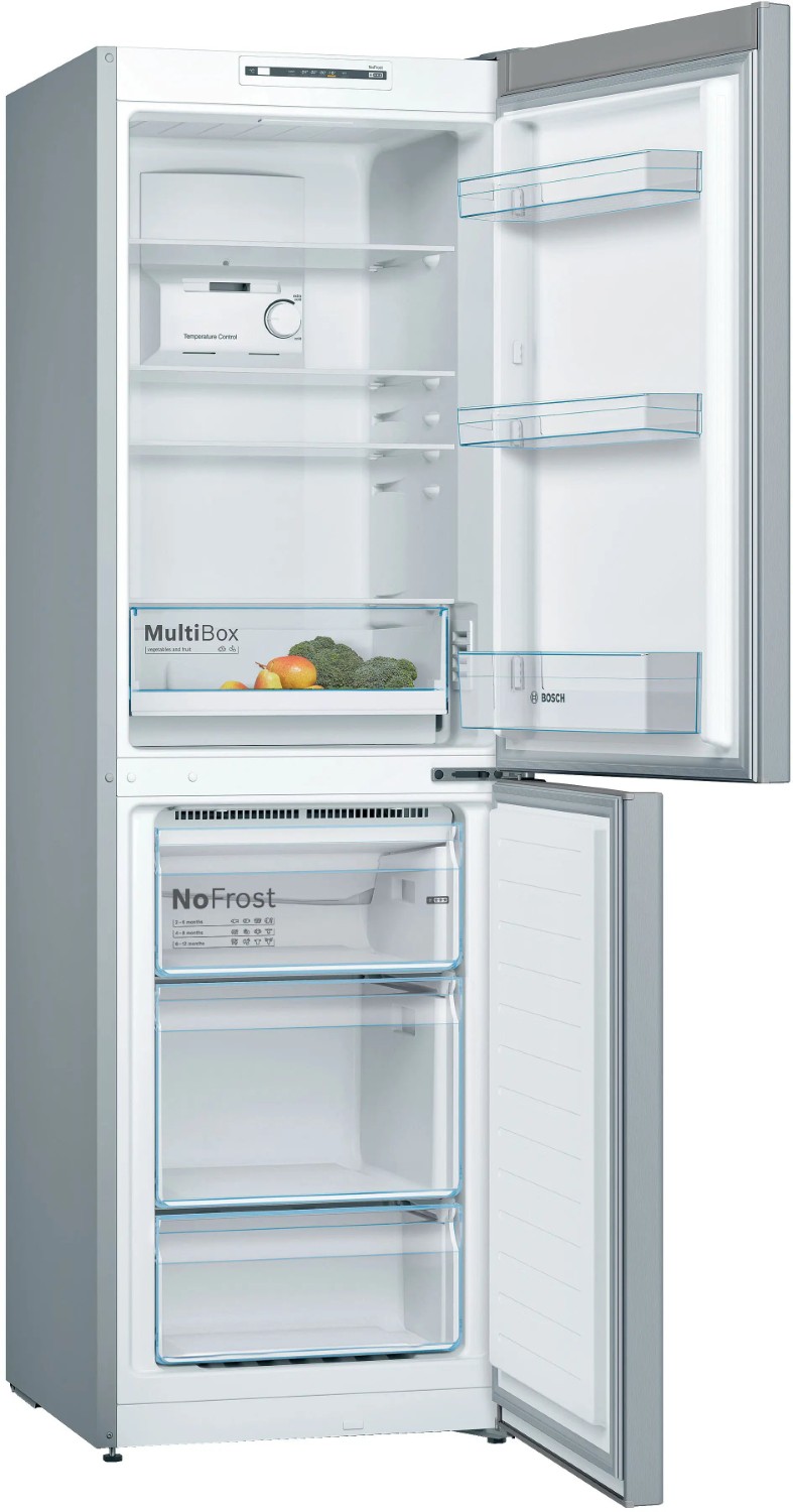 Bosch have designed the KGN34NLEAG for comfort and convenience. It has individual temperature controls for the fridge and freezer compartments, letting you customise settings based on your exact storage requirements. LED lighting provides clear visibility, ensuring you can easily find what you need with just a glance.