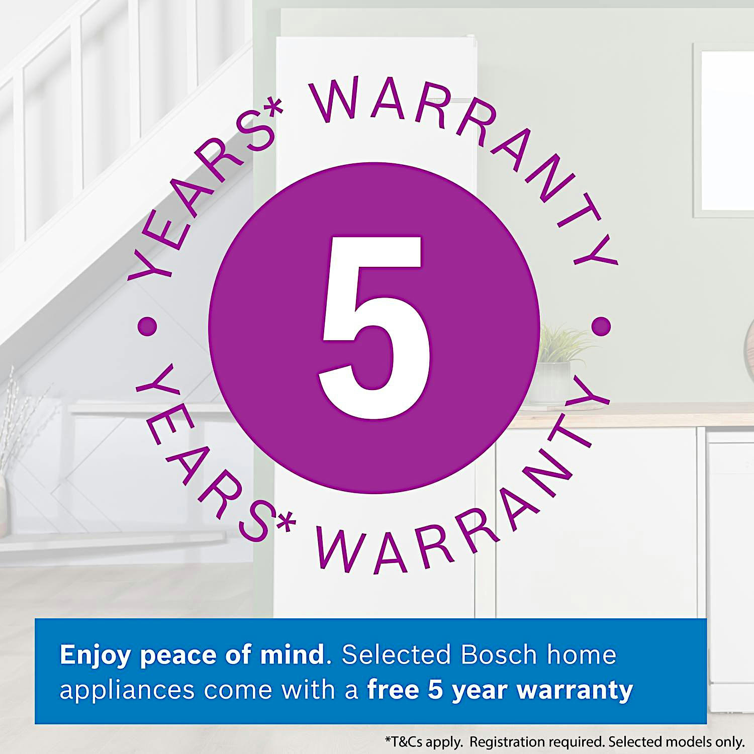 We're thrilled to be able to offer customers a FREE 5 Year Warranty after purchasing this Bosch appliance.