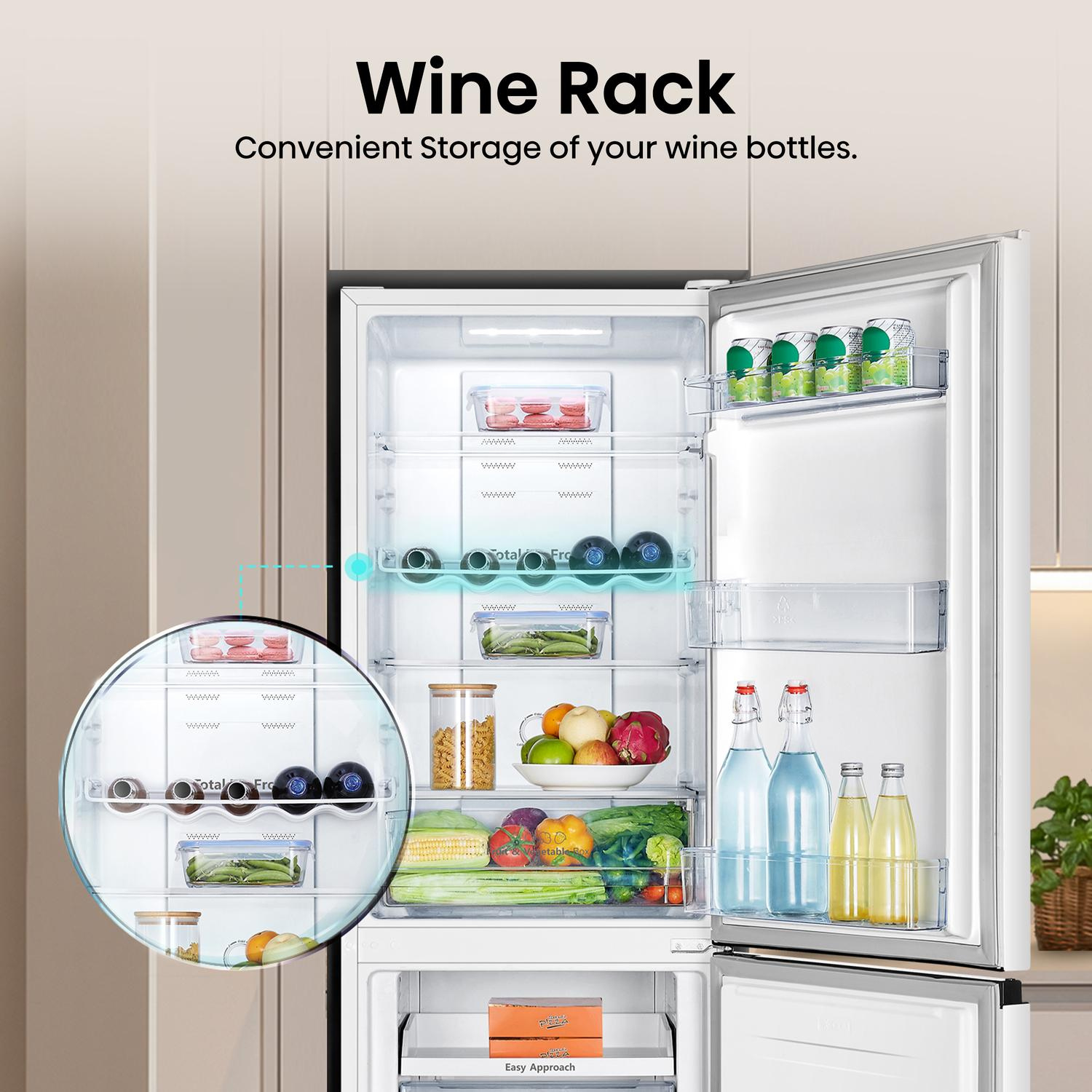 - Easy approach tray: With an extra 100mm of opening space, organising and removing large items such as pizza boxes is effortless, even when the upper fridge door is closed.