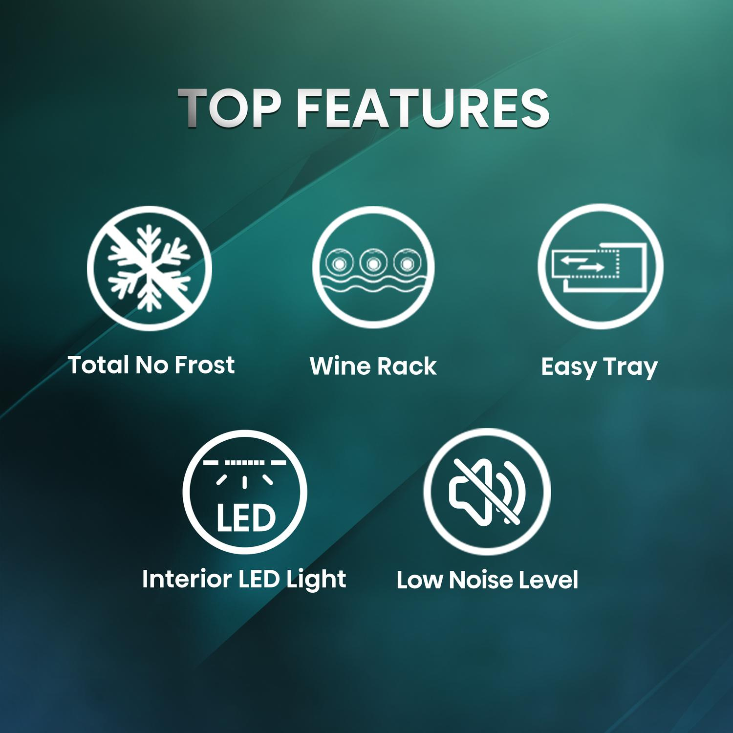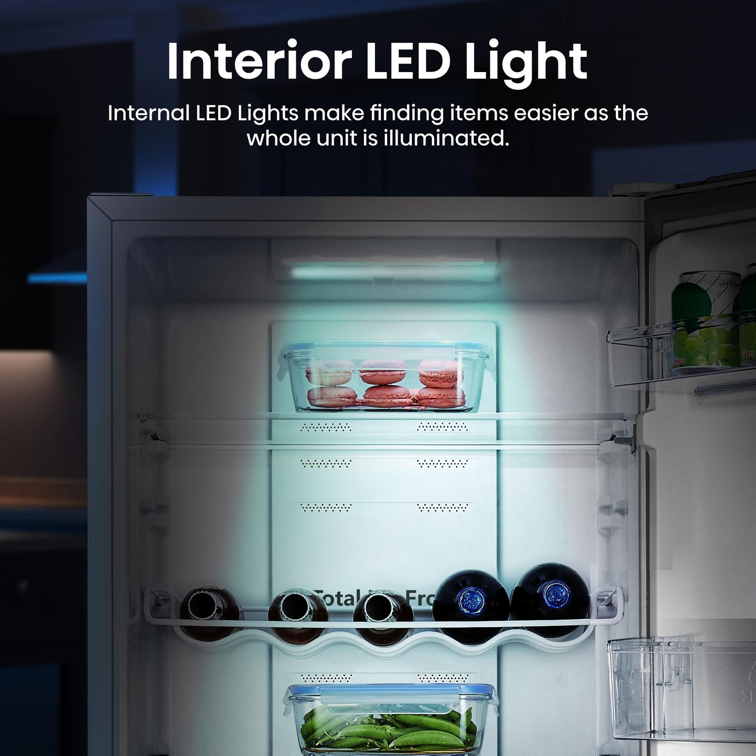 | Fridge Freezer Features: | Bottle Rack, Fast Freeze Function, Frost Free, LED Lighting, Reversible Doors |