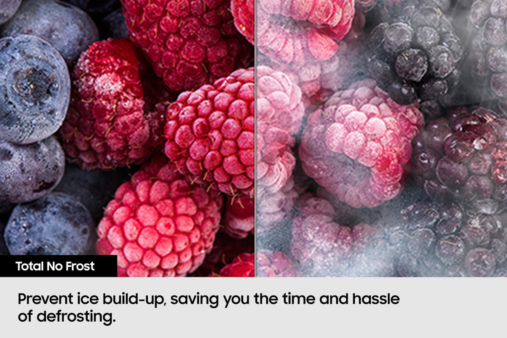 No Frost (frost free) technology eliminates ice build-up, maintaining a consistent temperature and requiring no manual defrosting. Samsung's All Around Cooling system ensures cool air is evenly distributed throughout the compartments, keeping every item perfectly chilled. Power Cooling and Power Freezing functions offer rapid cooling and freezing when needed.