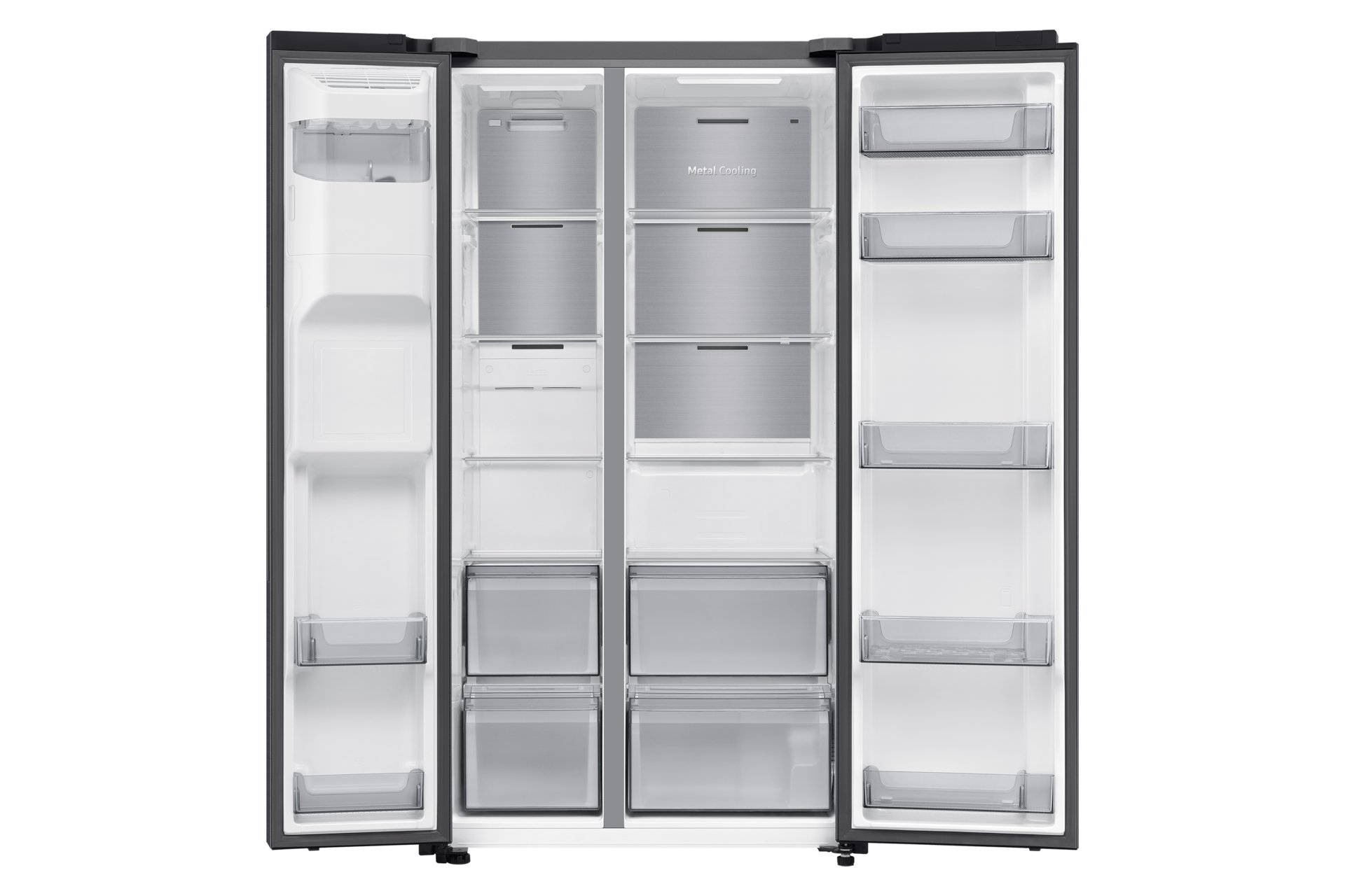 The RS70F64KEFEU boasts a matte brushed dark metal finish with practical design elements, including a simple internal display and recessed door handles. A climate class rating of ST and cooling capacity of 13 kg per 24 hours, make this fridge freezer perfectly suited for various environments.