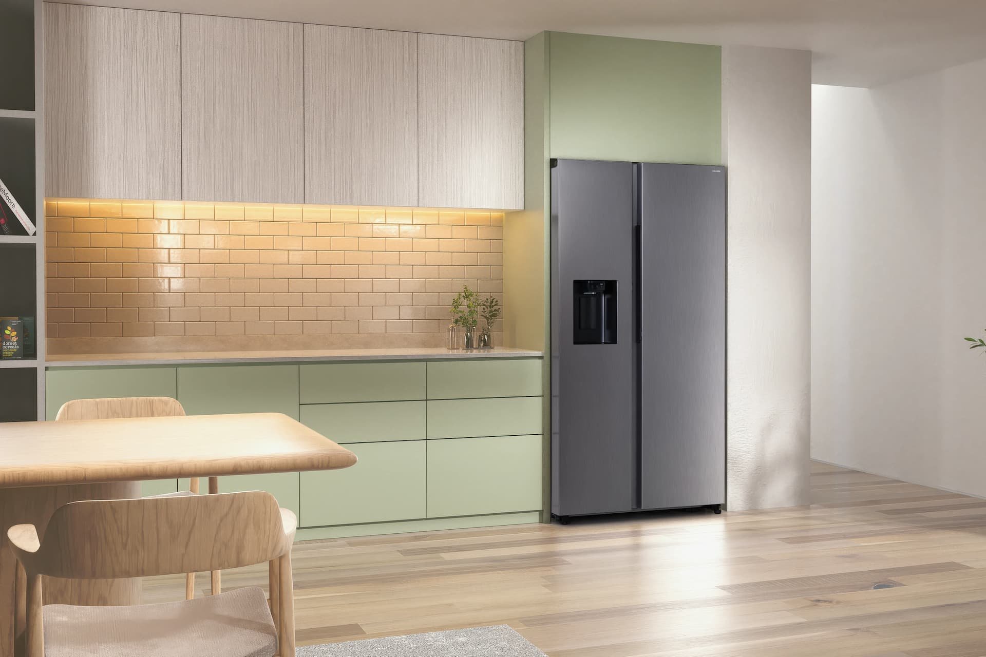Equipped with AI Energy Mode, this Samsung fridge freezer can reduce energy usage by up to 10%. The intelligent compressor adapts its operation based on your usage patterns and surrounding conditions, optimising performance for energy savings without compromising on freshness. The Digital Inverter Compressor further enhances efficiency, ensuring quieter operation and longer lifespan.