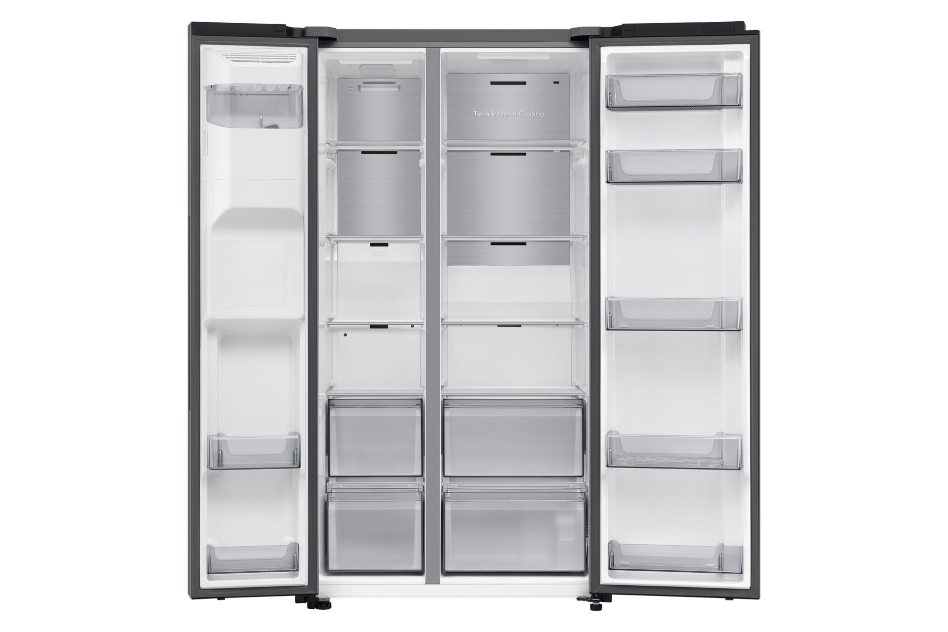 Equipped with Twin Cooling Plus, the RS70F66KCTEU ensures optimal freshness for your perishable goods by utilising two separate air flows for the fridge and freezer. This prevents food odours from mingling, all while maintaining ideal humidity levels. Additionally, Samsung's Metal Cooling feature retains temperature to ensure food stays cool, even when the fridge door is opened.