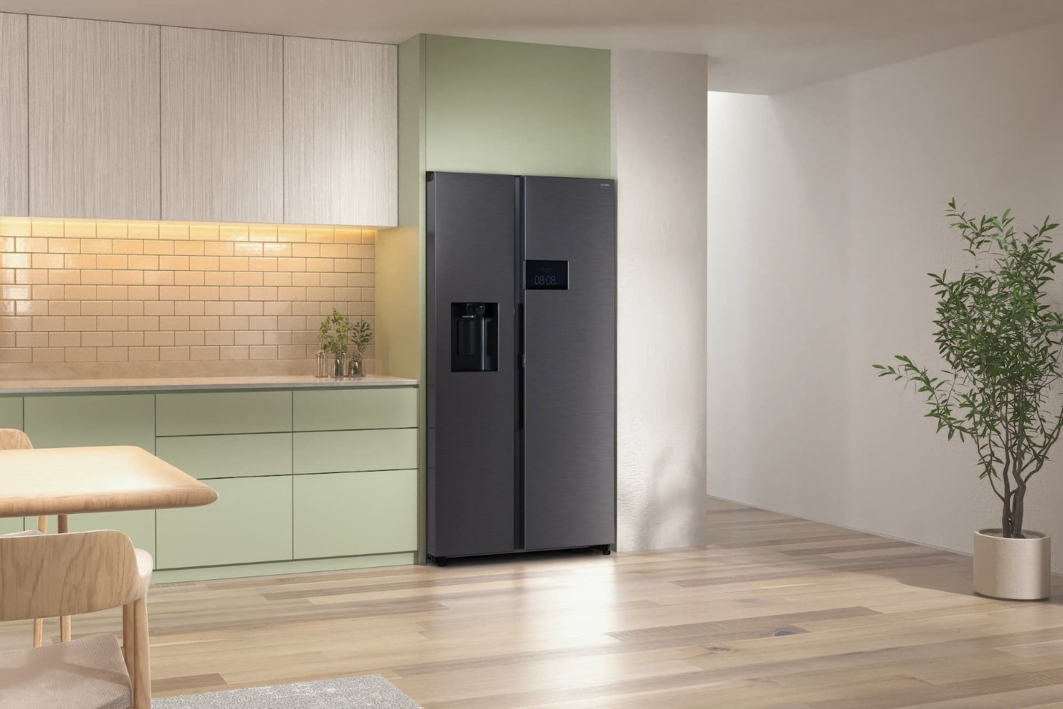 The RS90F64EEFEU fridge freezer has a plumbed water and ice dispenser that provides chilled water and ice on demand, eliminating the need for manual filling. It also comes with an exceptionally spacious design including eight shelves, seven door pockets, and four drawers for organised food storage.