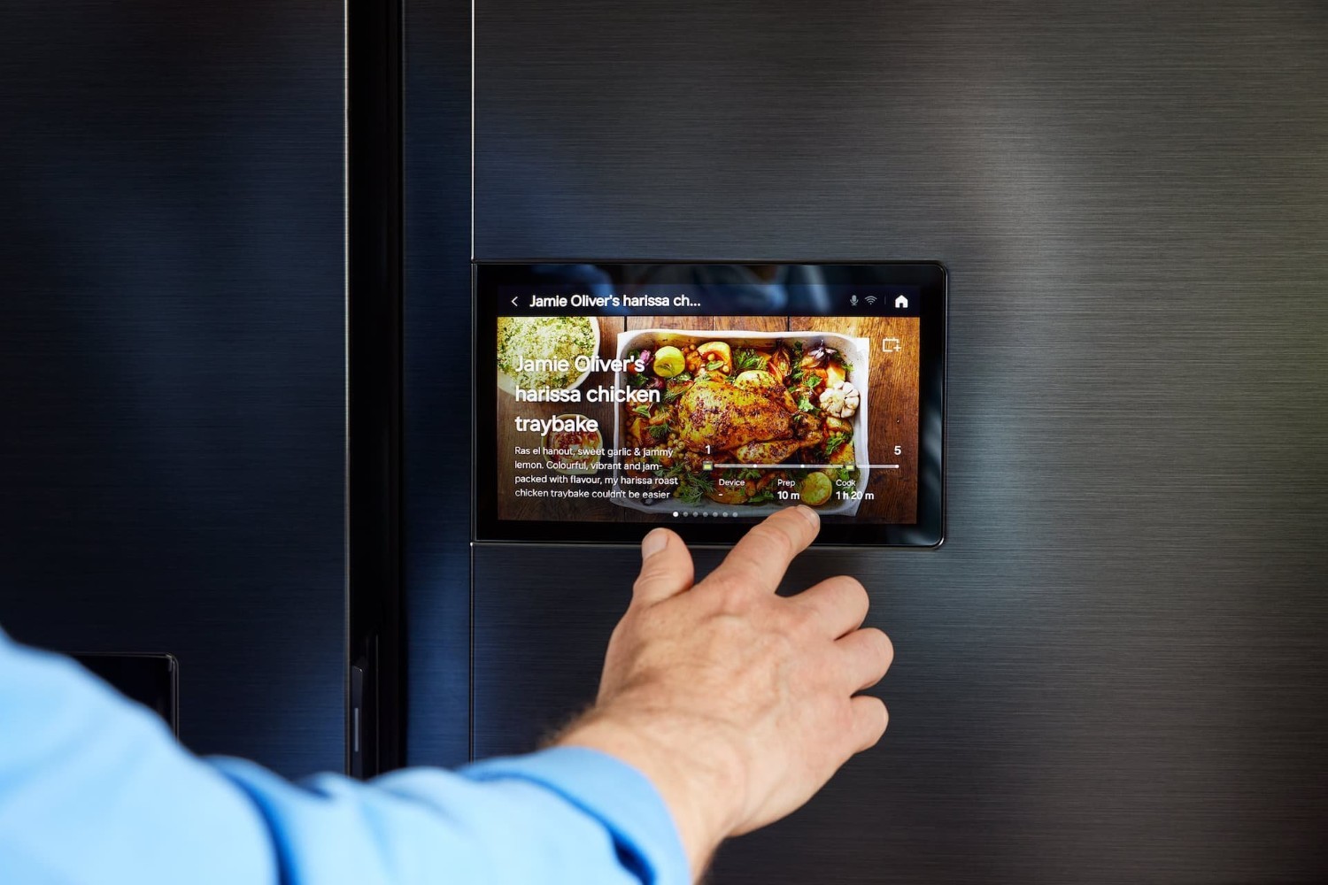 Equipped with Samsung's 9" LCD AI Home display, this fridge lets you easily manage smart devices, access apps, and receive personalised information. Powered by Bixby, you can control settings and ask questions using voice commands. The RS90F64EEFEU is fully compatible with Samsung's SmartThings network, enabling you to effortlessly connect and control smart devices.