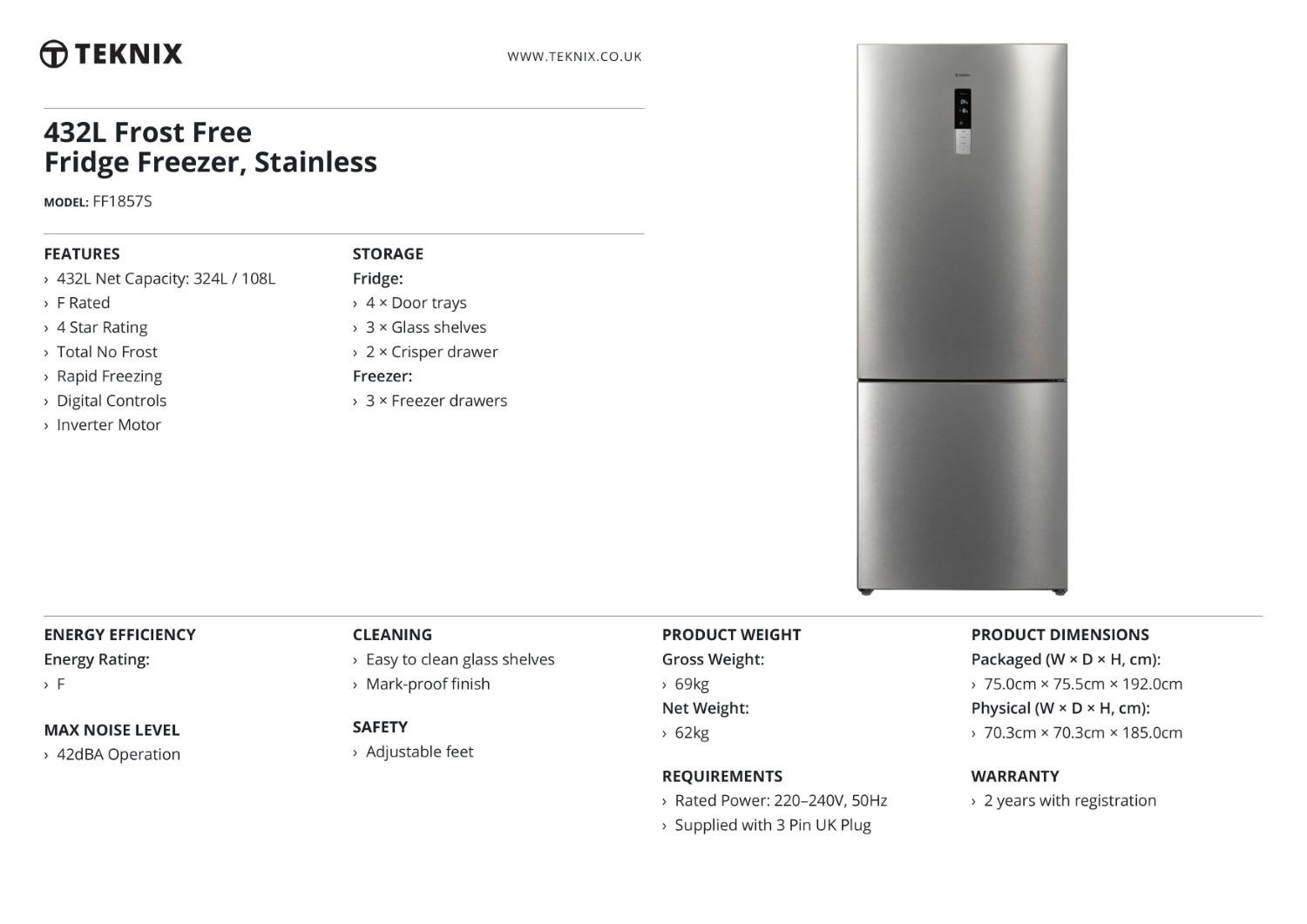 - 108L Total No Frost Freezer Capacity