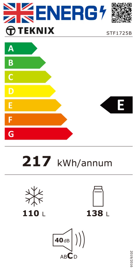 The Teknix STF1725B comes with a reassuring 2 year manufacturer warranty (upon registration with Teknix), ensuring that you have support and can enjoy your fridge freezer with confidence.