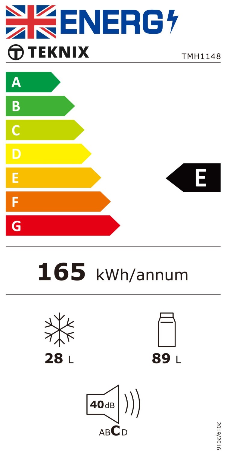 The Teknix TMH1148W operates at a maximum noise level of 40dB(A), ensuring a quiet environment in your kitchen or living space.