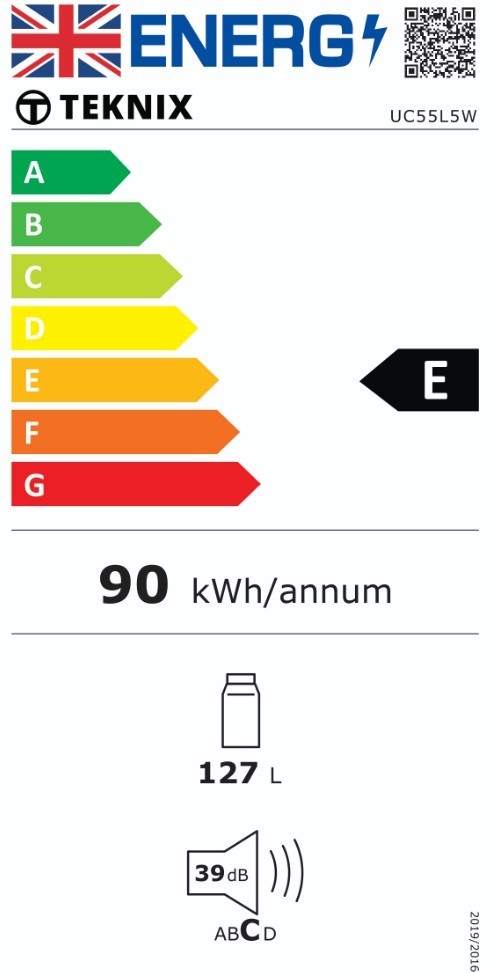 Teknix's UC55L5W under counter larder fridge, has a whopping 127 litres net capacity. This fridge is perfect for smaller kitchens, providing ample space for your fresh foods, all in a compact, space saving form.