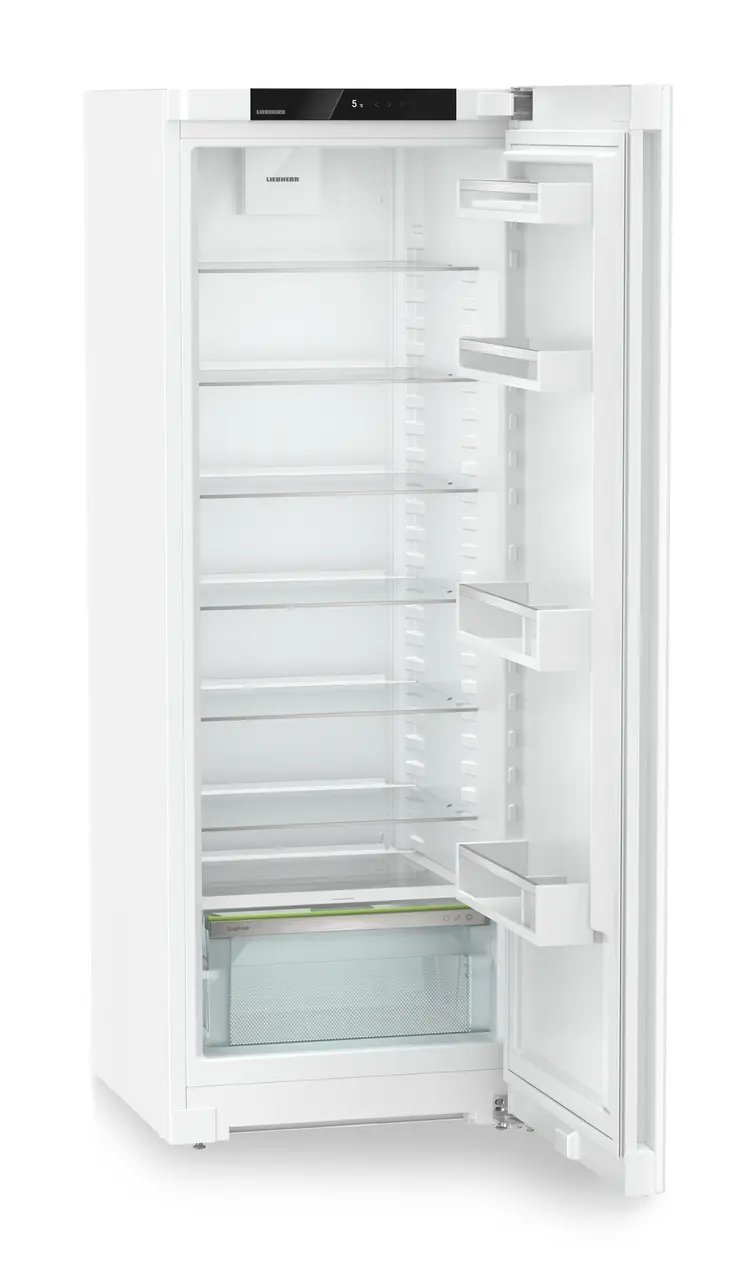 Liebherr's BluPerformance technology sets new standards in refrigeration by offering increased storage capacity, energy efficiency, and quiet operation. The EasyFresh system ensures that your fruits and vegetables remain fresh for longer by maintaining optimal humidity levels. The SuperCool function rapidly cools newly added groceries to preserve their freshness, automatically switching off once the desired temperature is reached.