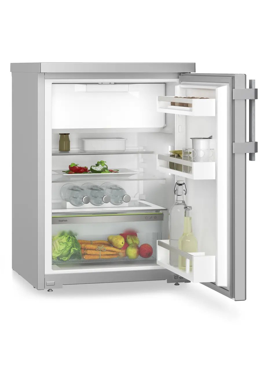 With a total volume of 125 litres, (109 litre fridge compartment with a 17 litre icebox), this fridge offers ample storage space. It features three adjustable glass shelves, a 3 bottle shelf, and height adjustable door shelves for flexible storage options. Reversible door hinges and a replaceable door seal add to the appliance's versatility and easy maintenance.
