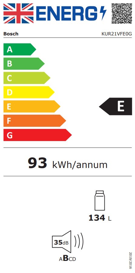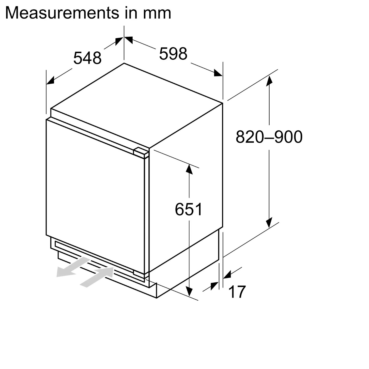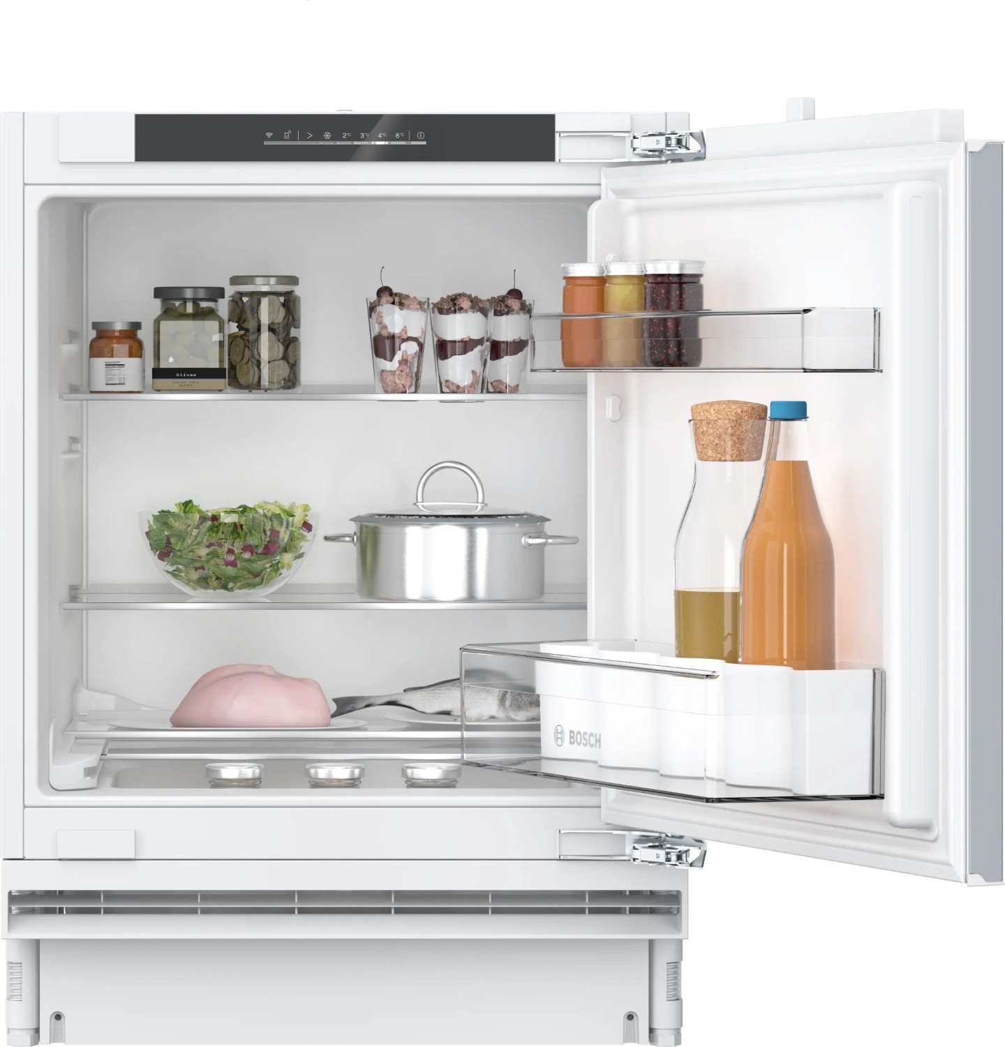 Bosch's KUR21VFE0G Series 4 built under fridge delivers unobtrusive compact refrigeration. With a 134 litres capacity, this fridge maximises cold storage while seamlessly fitting under counters in kitchens or utility areas. It's packed full of advanced features, including remote connectivity and quiet operation.