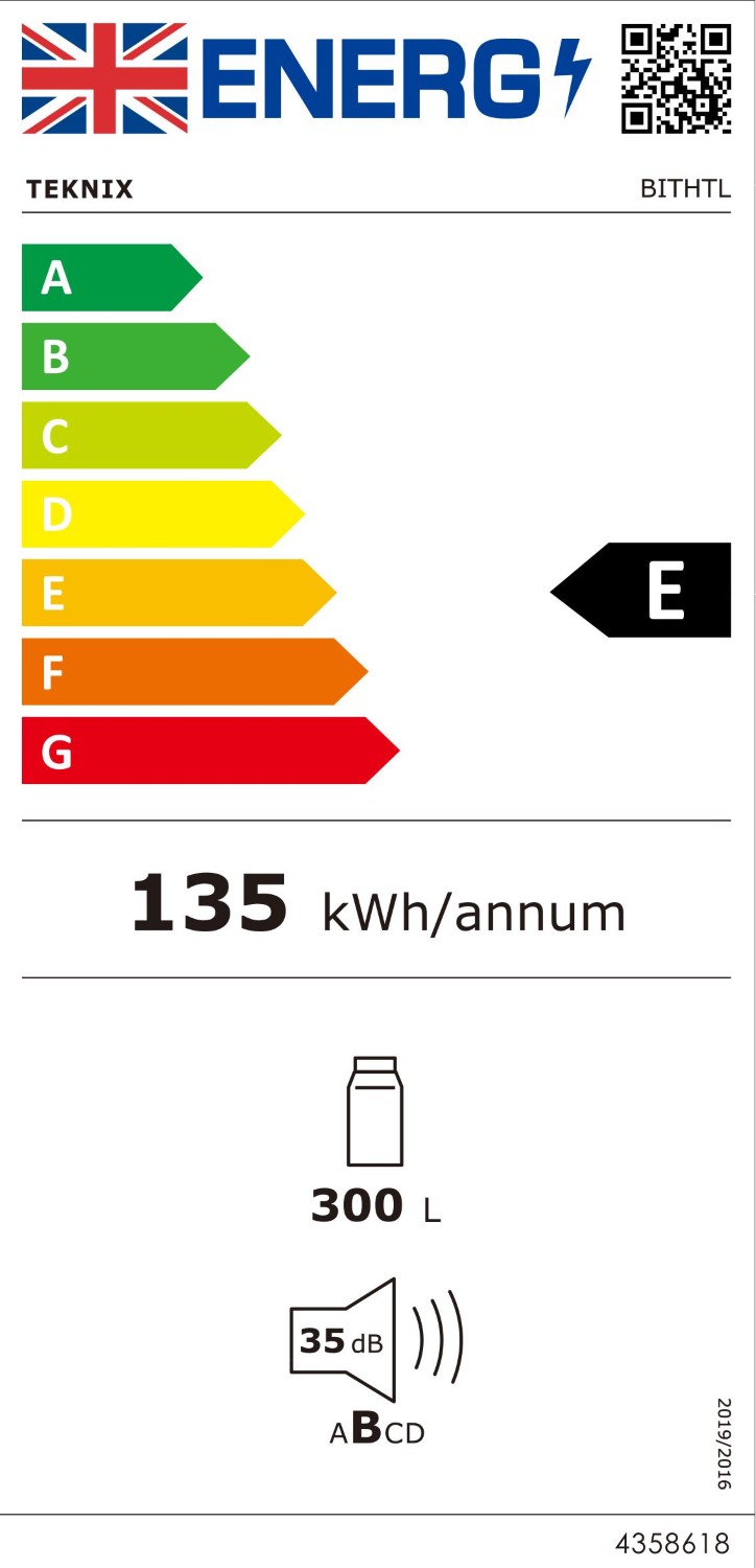 Teknix's BITHTL built in larder fridge is a spacious and efficient appliance designed to meet the needs of modern households. With a generous 300L net capacity, energy efficient operation, and user friendly features, this fridge is perfect for those who require ample storage space and reliable performance.