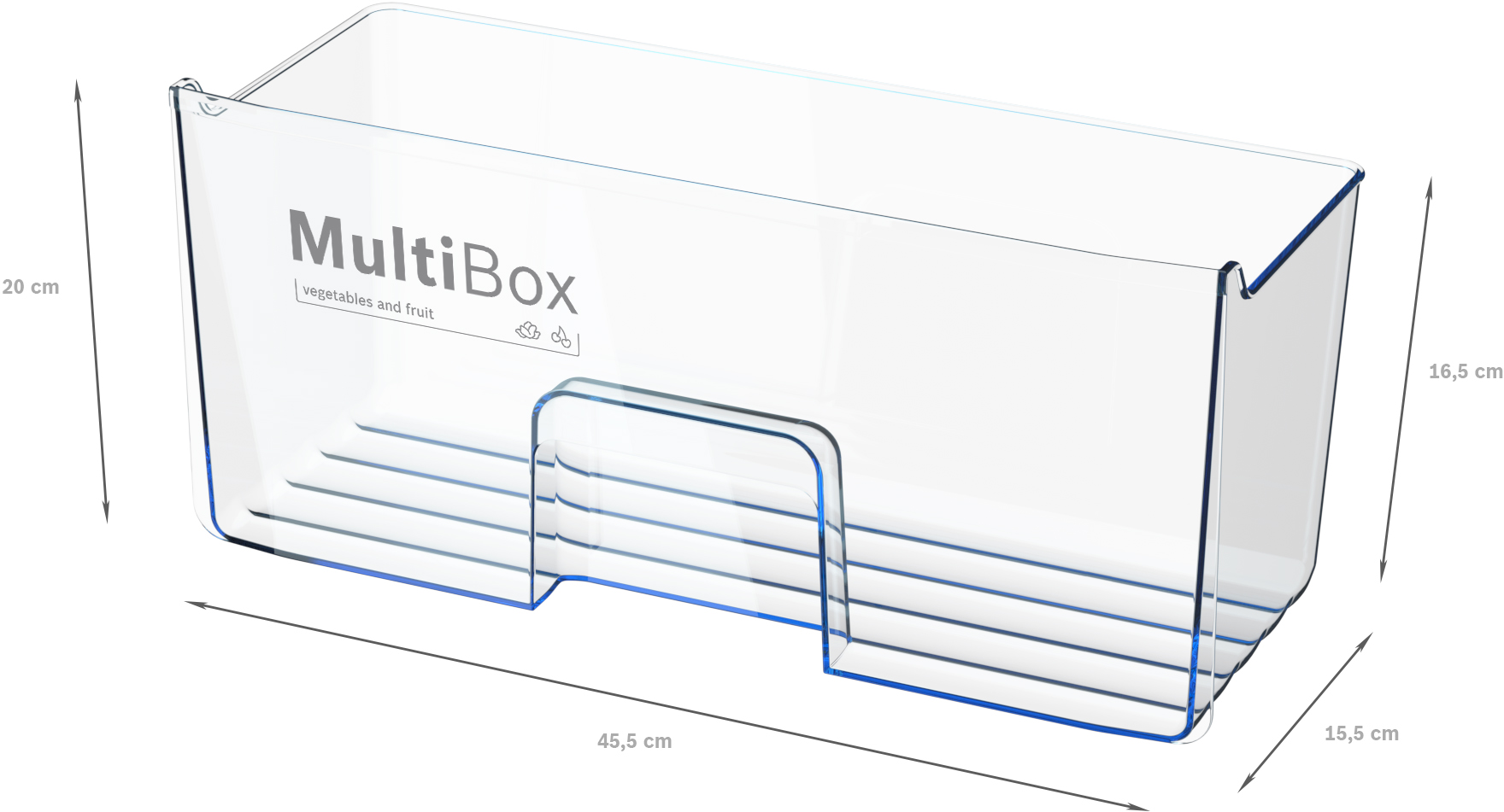Keep your fruits and vegetables fresher for longer with the MultiBox, a transparent drawer with a rippled base that protects delicate produce. This freshness system is ideal for those who prioritize healthy eating and want to reduce food waste.