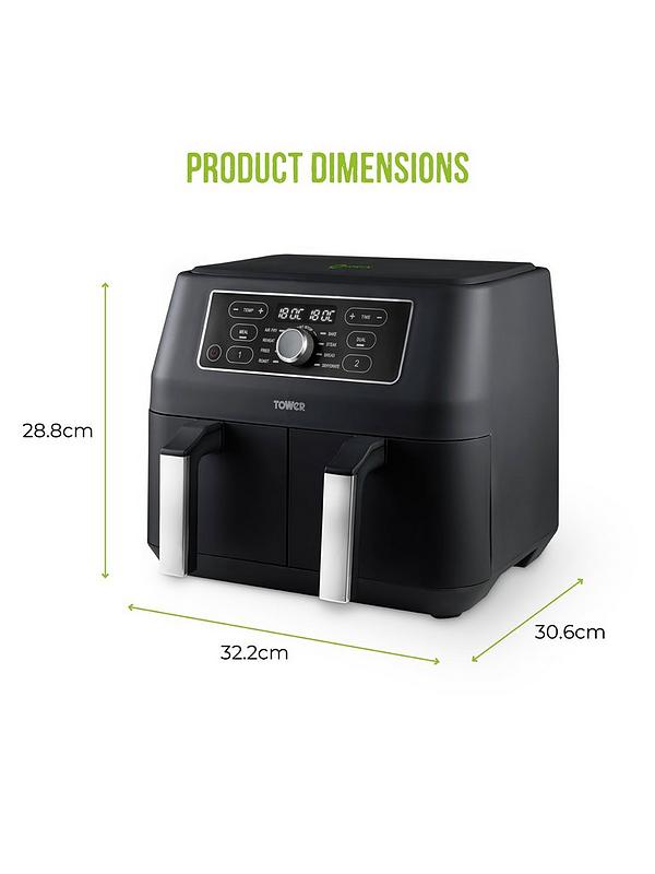 Tower T17181AFR Dual Basket Digital Air Fryer - Black with Chrome Trim
