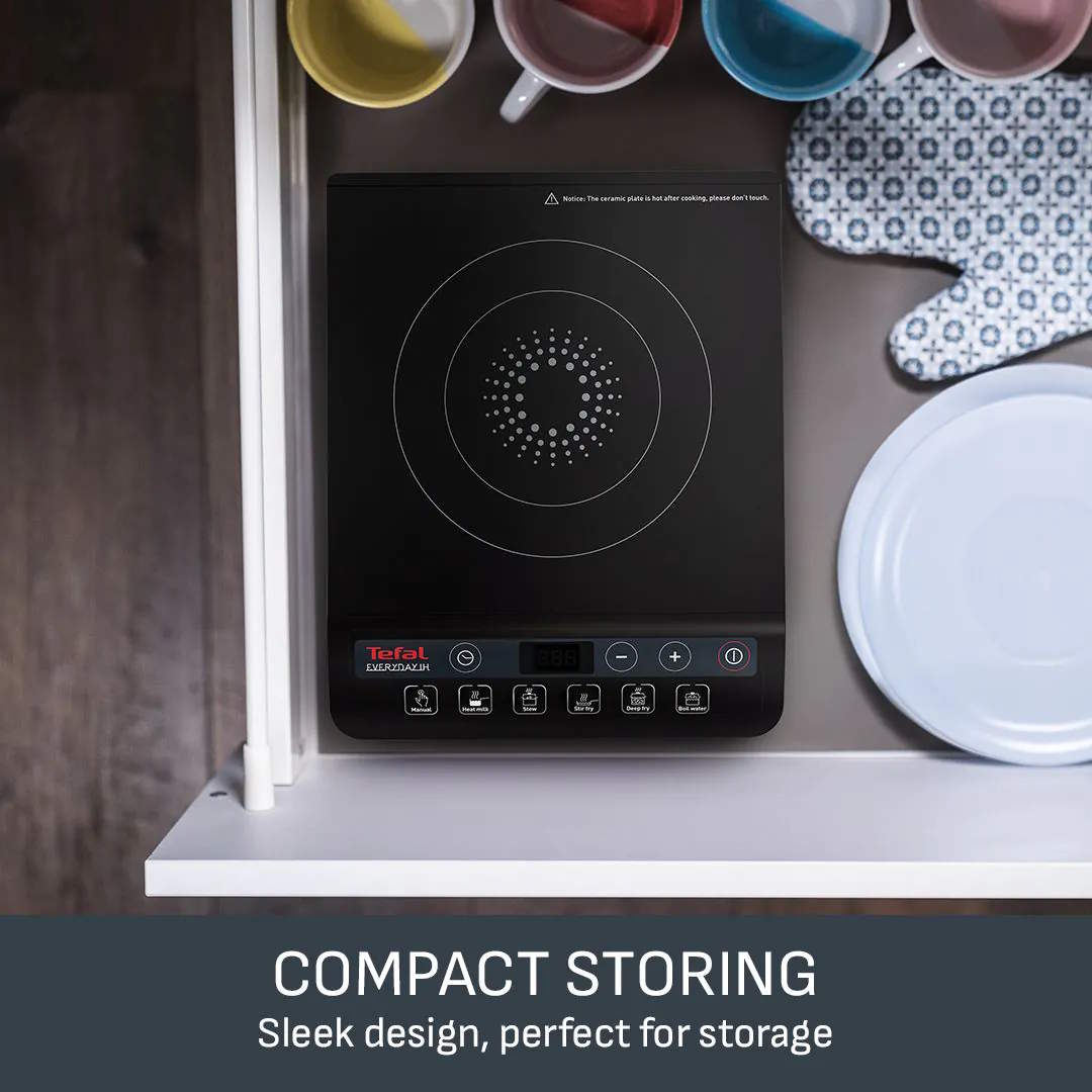 Tefal IH201840 single everyday black induction hob offers a modern, energy-efficient way to cook with precision and confidence. Featuring a stylish black ceramic surface, 9 adjustable power levels up to 2100W, and 6 convenient pre-set programs, this compact hob is ideal for everyday meals at home or as a flexible extra cooking solution.