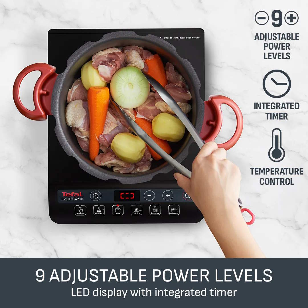 Choose from 9 power levels ranging from 450W to 2100W to suit everything from gentle heating to rapid boiling. The integrated 2 hour timer and clear LED digital display allow for accurate control, while the pause function lets you temporarily stop and resume cooking with ease.