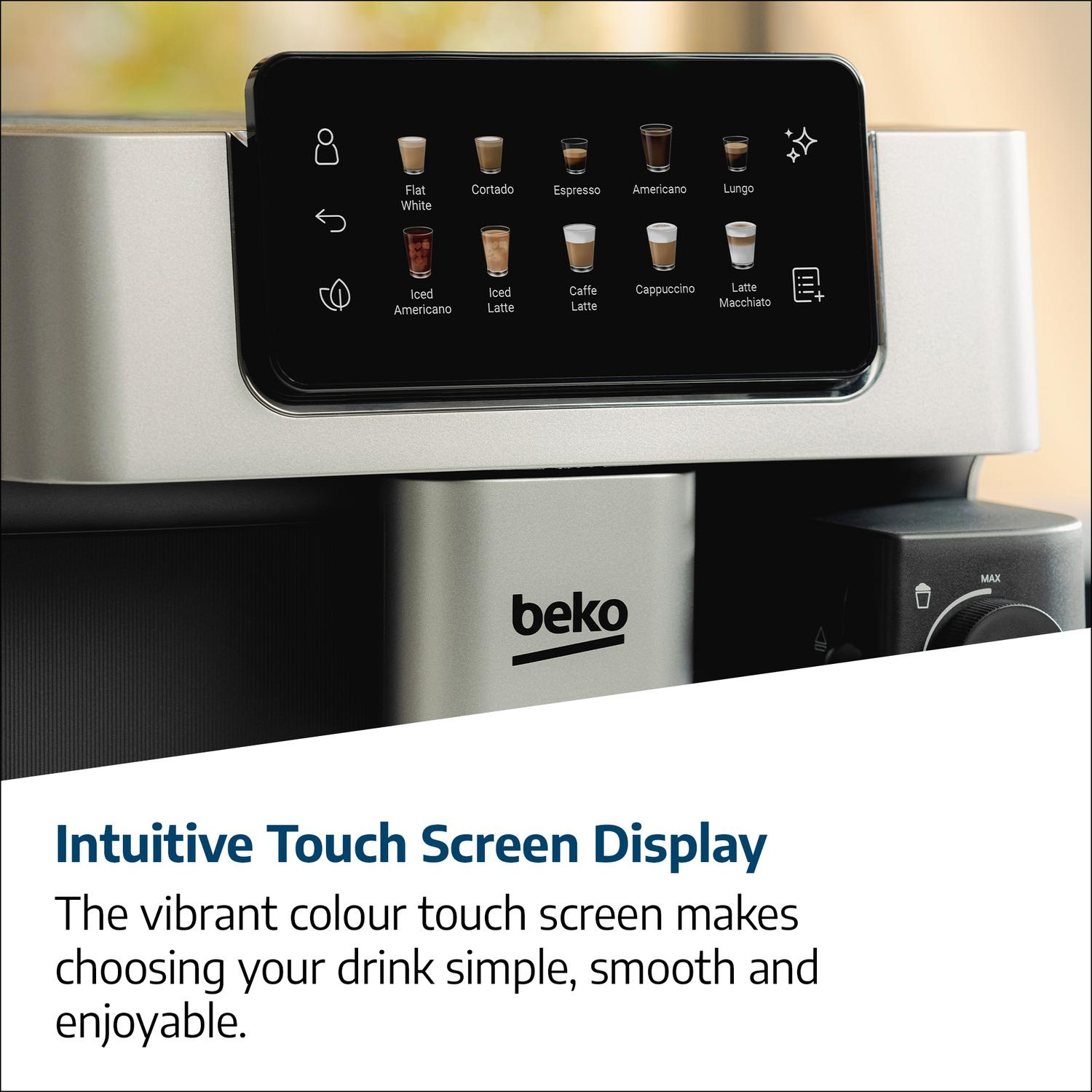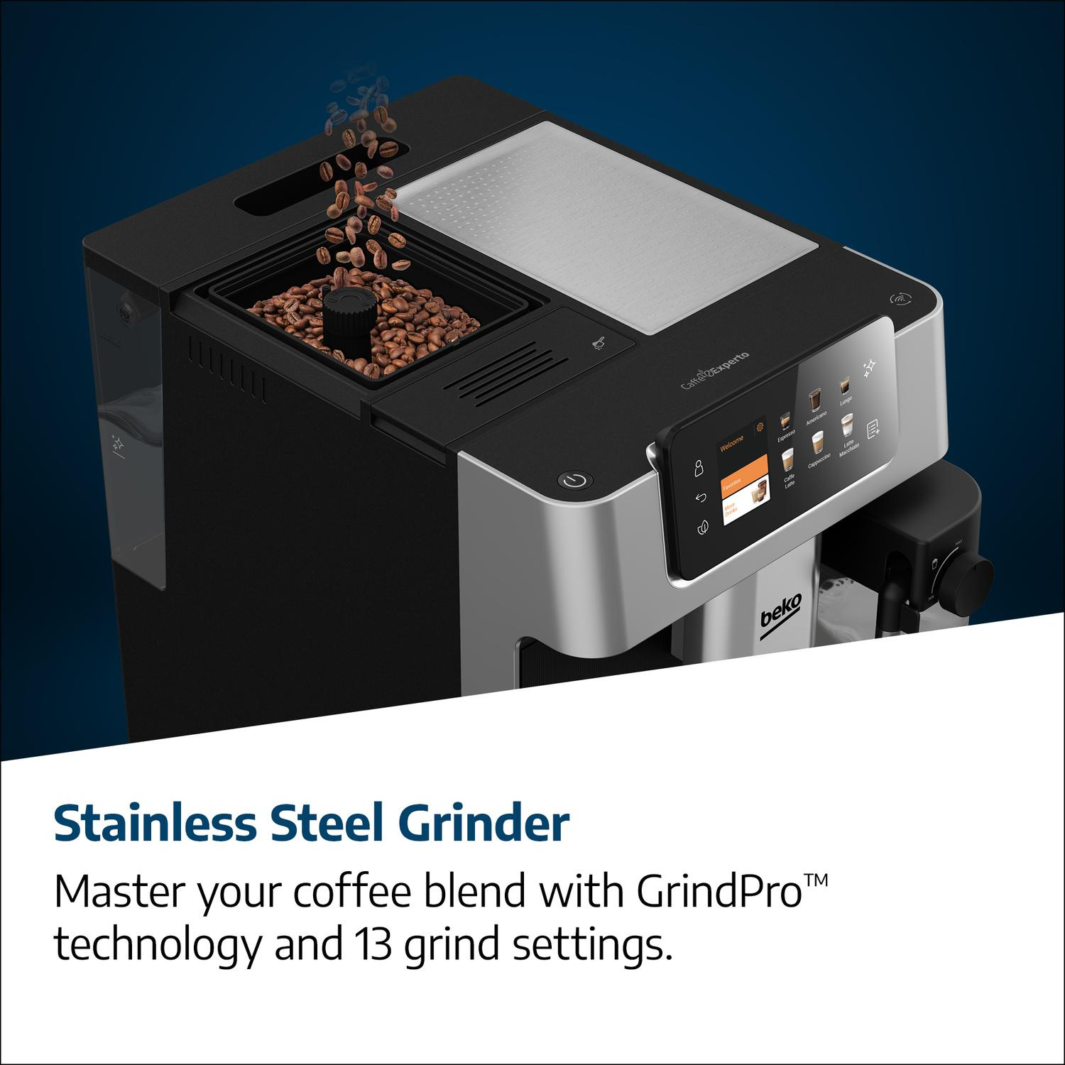 The Beko CEG7348X caffexperto bean to cup espresso machine brings café-quality coffee into your home with ease. Designed for coffee lovers who want variety, convenience and smart control, this sleek silver machine makes every cup feel like a personalised barista experience without leaving your kitchen.
