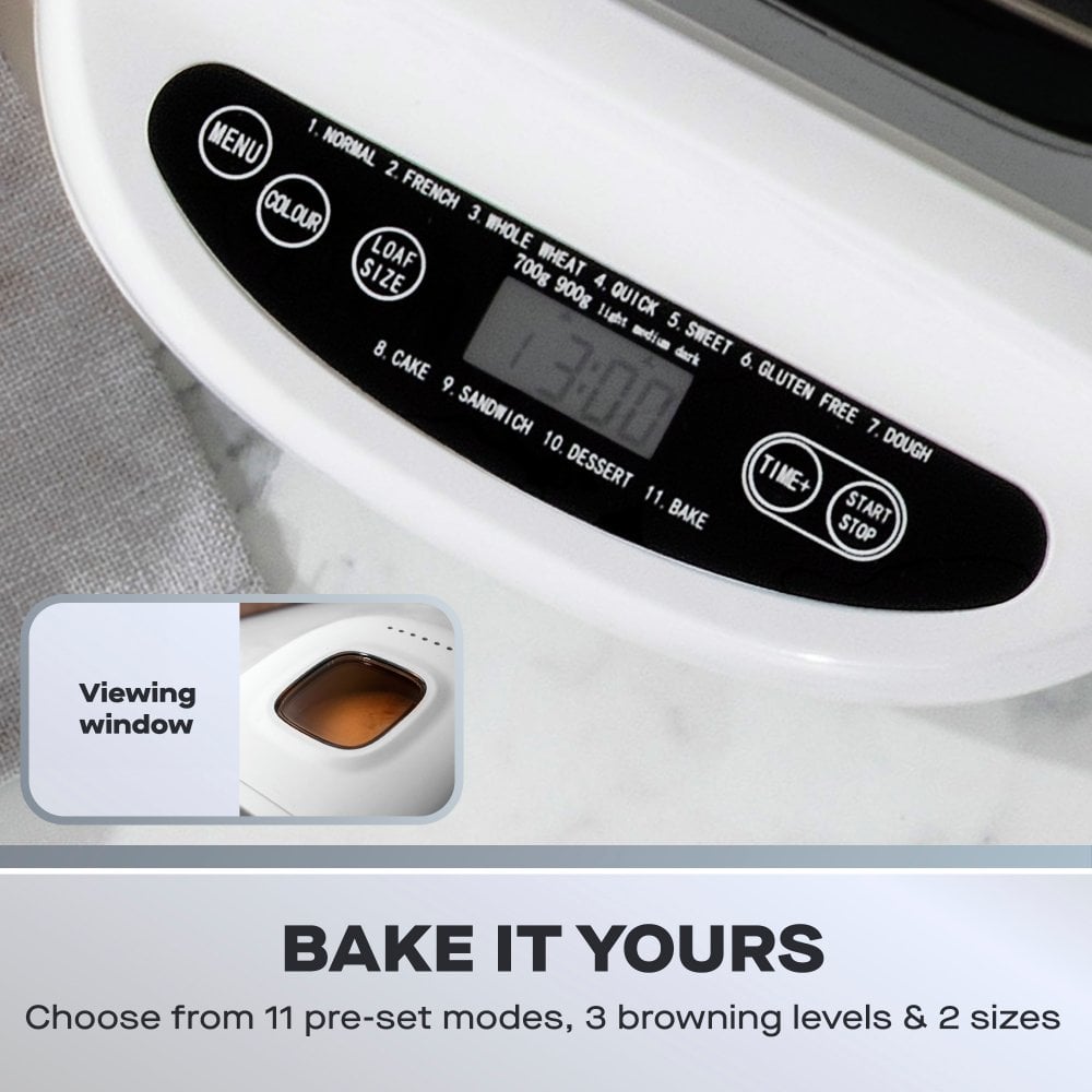Choose from 11 digital programmes to suit a variety of recipes, including white and whole wheat bread, gluten-free options, cakes, pizza dough and more. Whether you’re preparing everyday loaves or trying something new, the one touch settings make it simple.